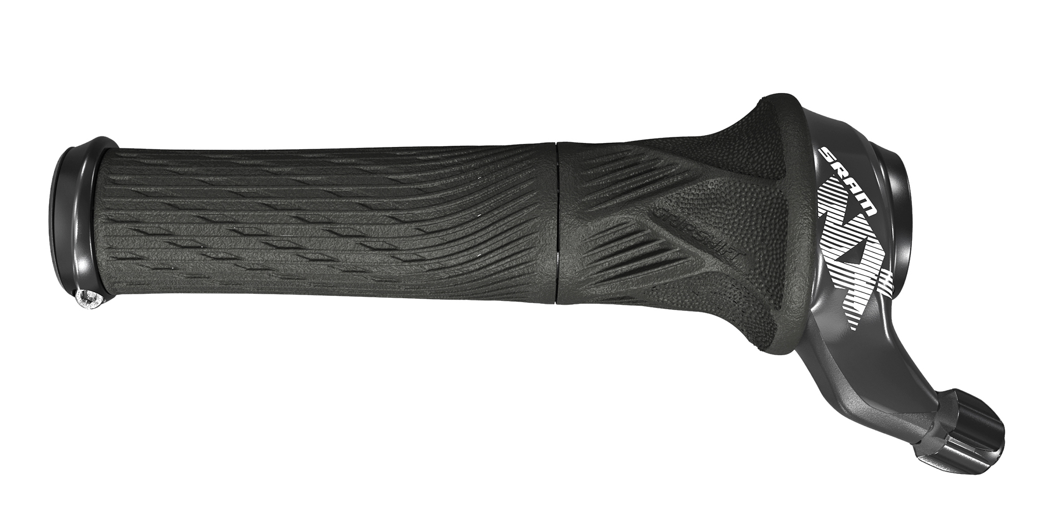 Deux options sont au programme : gâchettes Trigger et poignées tournantes Twister. Le Trigger Sram NX pèse 142g et reprend la technologie X-Actuation pour un changement des rapports plus direct, comme sur les modèles haut de gamme. Il n’est pas compatible Matchmaker (fixation sur le même collier qu’un levier de frein de la marque), mais il permet aussi de monter 5 vitesses à la fois et il ne coûte que 28€. A vérifier en pratique, mais il semble très intéressant sur papier.