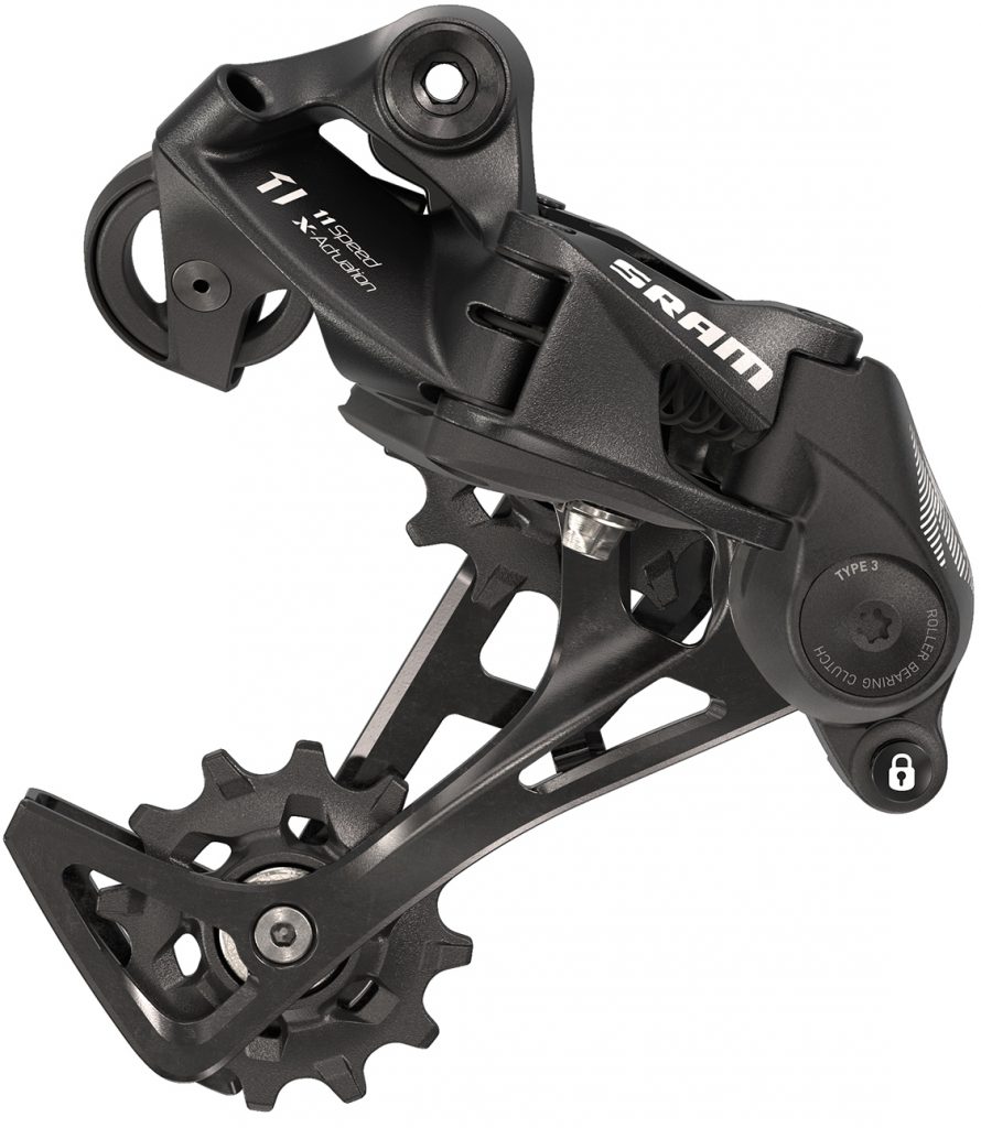 Même s’il s’agit d’un modèle entrée de gamme, le dérailleur arrière utilise les mêmes technologies que le haut de gamme XX1 : design X-Horizon (déplacement horizontal), Cage-Lock (blocage de la chape de dérailleur – en acier – pour faciliter le retrait de la roue, ou encore les galets 12 dents avec dents X-Sync. Il ne sera disponible qu’en une seule longueur de cage et son poids annoncé est de 322g. Pour le coup, on est loin des X1 et GX qui tournent entre 250 et 265g. Le dérailleur arrière Sram NX est annoncé à 76€, soit encore un tarif un peu élevé, mais on peut espérer le trouver à des tarifs bien plus avantageux dans la réalité.