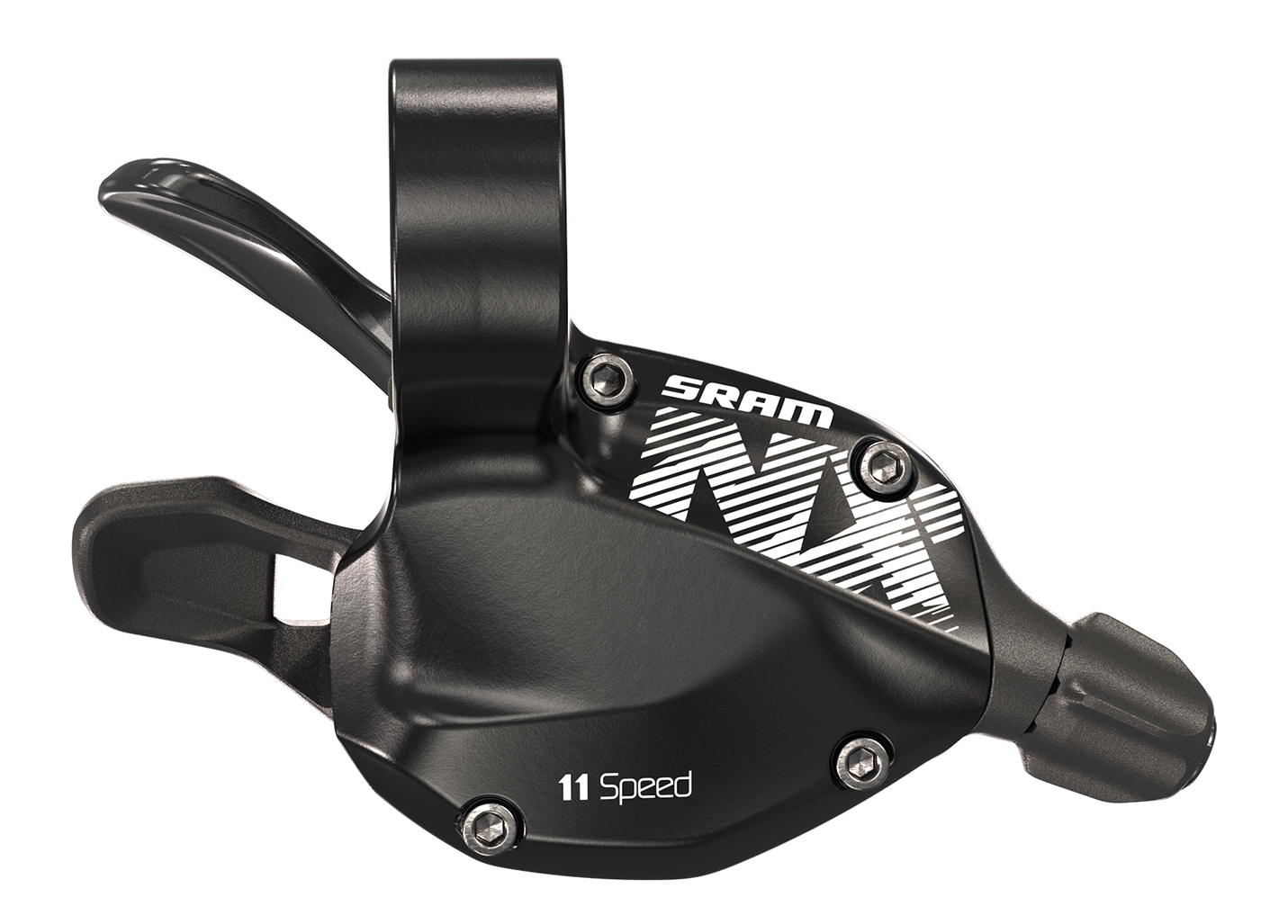 A en croire le dossier de presse, et cela ressort également dans toutes les photos communiquées par la marque, le Sram NX veut viser une clientèle plus récréative, pour laquelle le 1×11 est avant tout synonyme de simplification, tant sur le terrain où il n’y a qu’une seule manette de changement de vitesses à gérer, qu’à l’atelier, où on apprécie de ne pas avoir de dérailleur avant qui risque de se dérégler. Voyons chaque composant du groupe un par un.