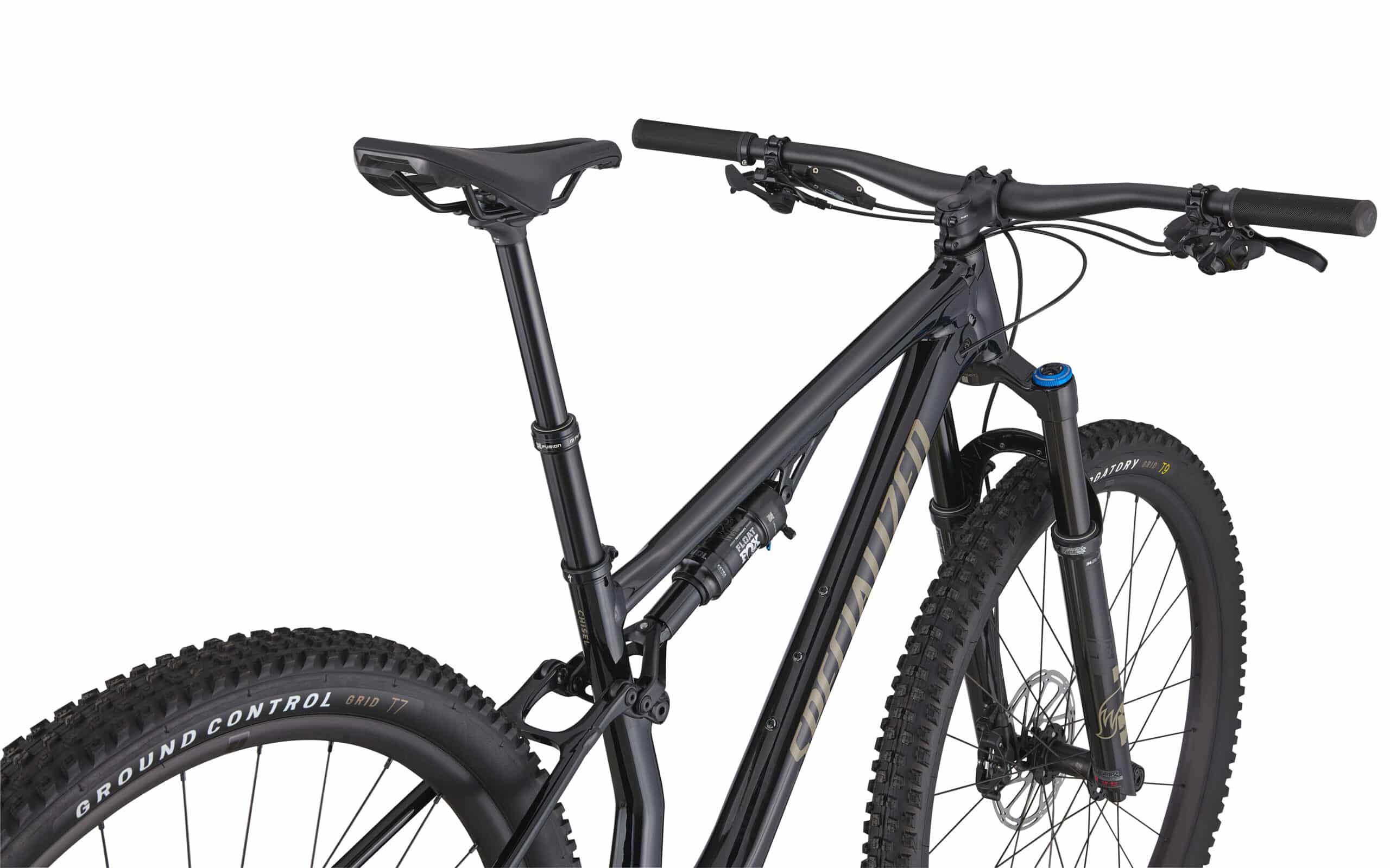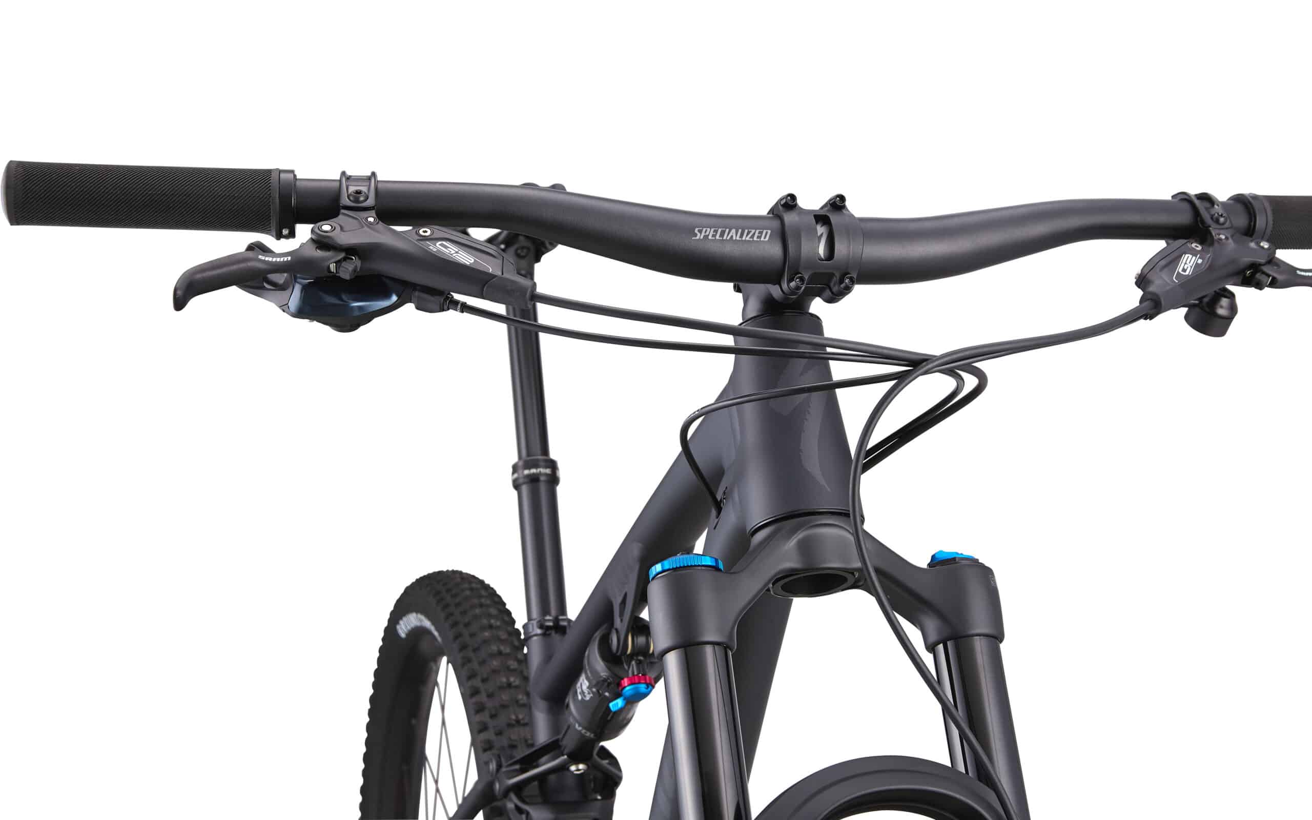 La différence entre les deux modèles prend place dans les choix de certains composants, et notamment des suspensions. Sur ce grand frère EVO, c’est une fourche Fox 34 Performance (cartouche Grip 2) de 130 mm que l’on retrouve en lieu et place de la RockShox SID (ou Recon Silver RL pour les modèles plus accessibles) de 120 mm. Pas de changement de débattement côté amortisseur (qui demeure à 110 mm), mais un changement de crèmerie avec un plus gros Fox Float Performance.