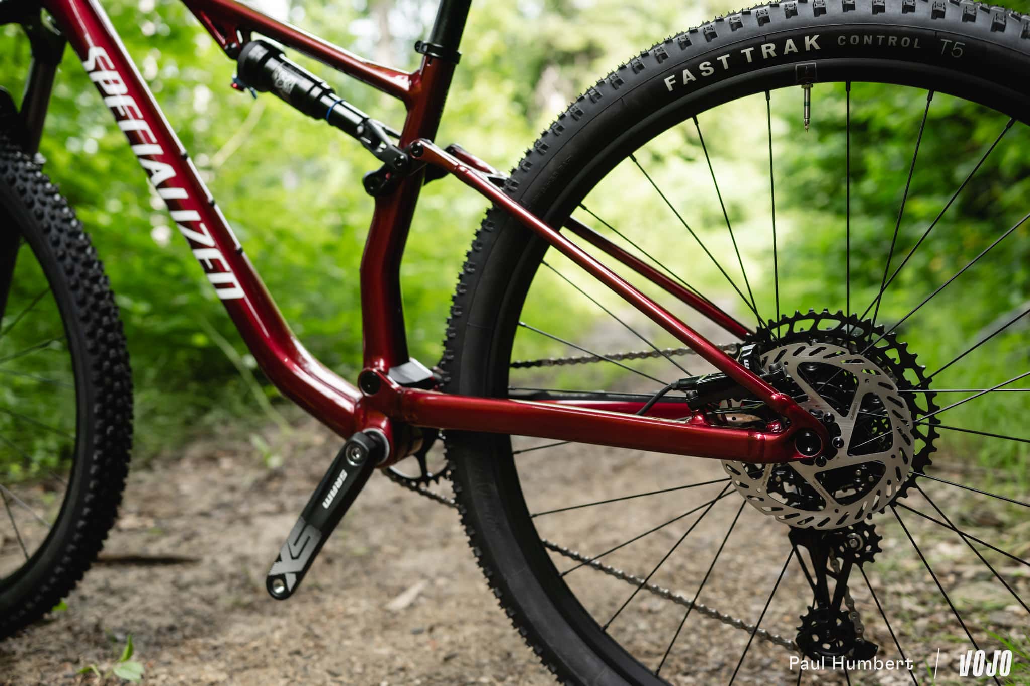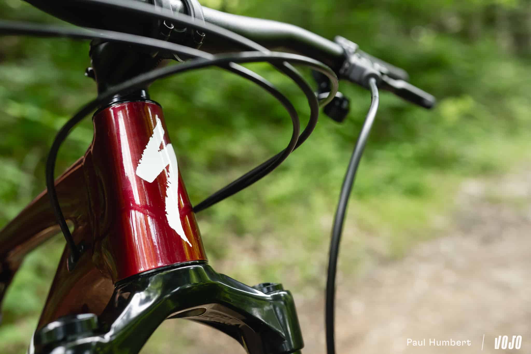 Specialized annonce que les 110 mm de suspension de la suspension arrière ont un comportement « à mi-chemin entre un Epic et un Epic Evo », sous-entendu un petit moins exigeant que sur l’Epic mais un peu plus confortable, sans aller jusqu’à la véritable souplesse de l’Epic Evo en position ouverte (lire Test | Specialized Epic Evo 8 : virage vers le all-mountain). On l’a dit, le Chisel reste un vélo sportif.