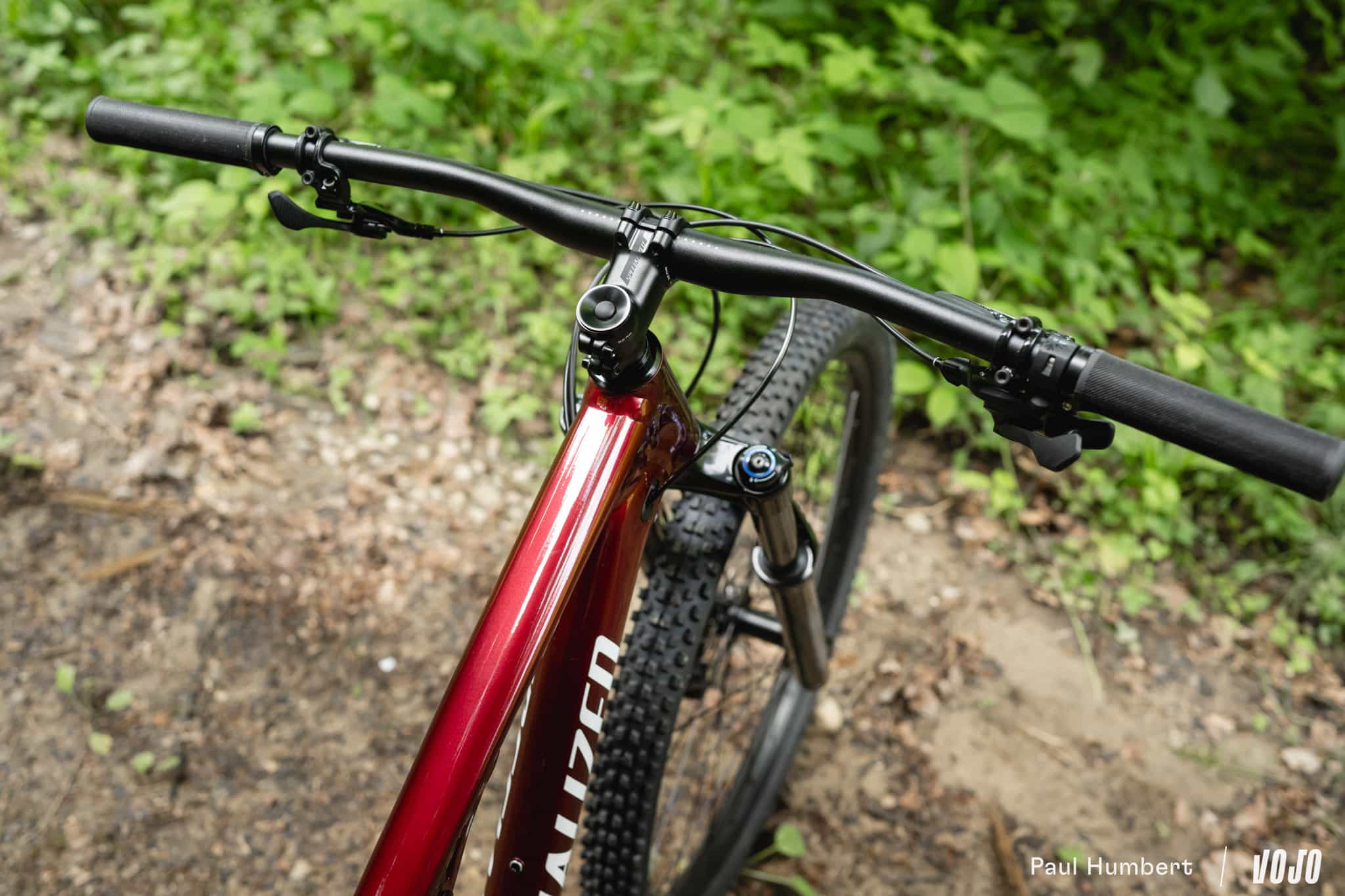 - Specialized Chisel Comp Shimano (12,86 kg en taille M) : fourche RockShox SID (modèle de base, cartouche Rush) et amortisseur Deluxe Select+, transmission Shimano Deore / SLX 1×12, freins Shimano Deore M6100, roues Specialized / Shimano, pneus Specialized Ground Control / Fast Track en 29 x 2,35″, carcasse Control et gomme T5.