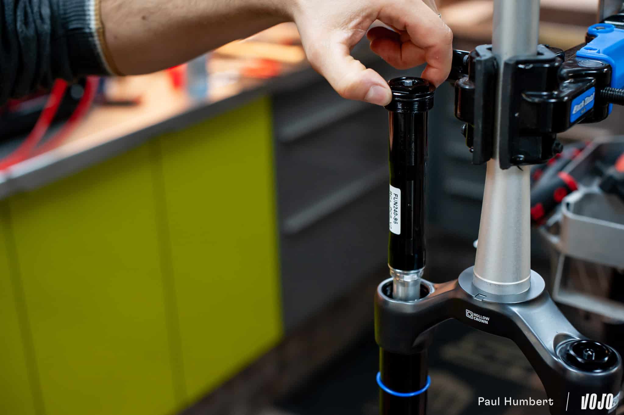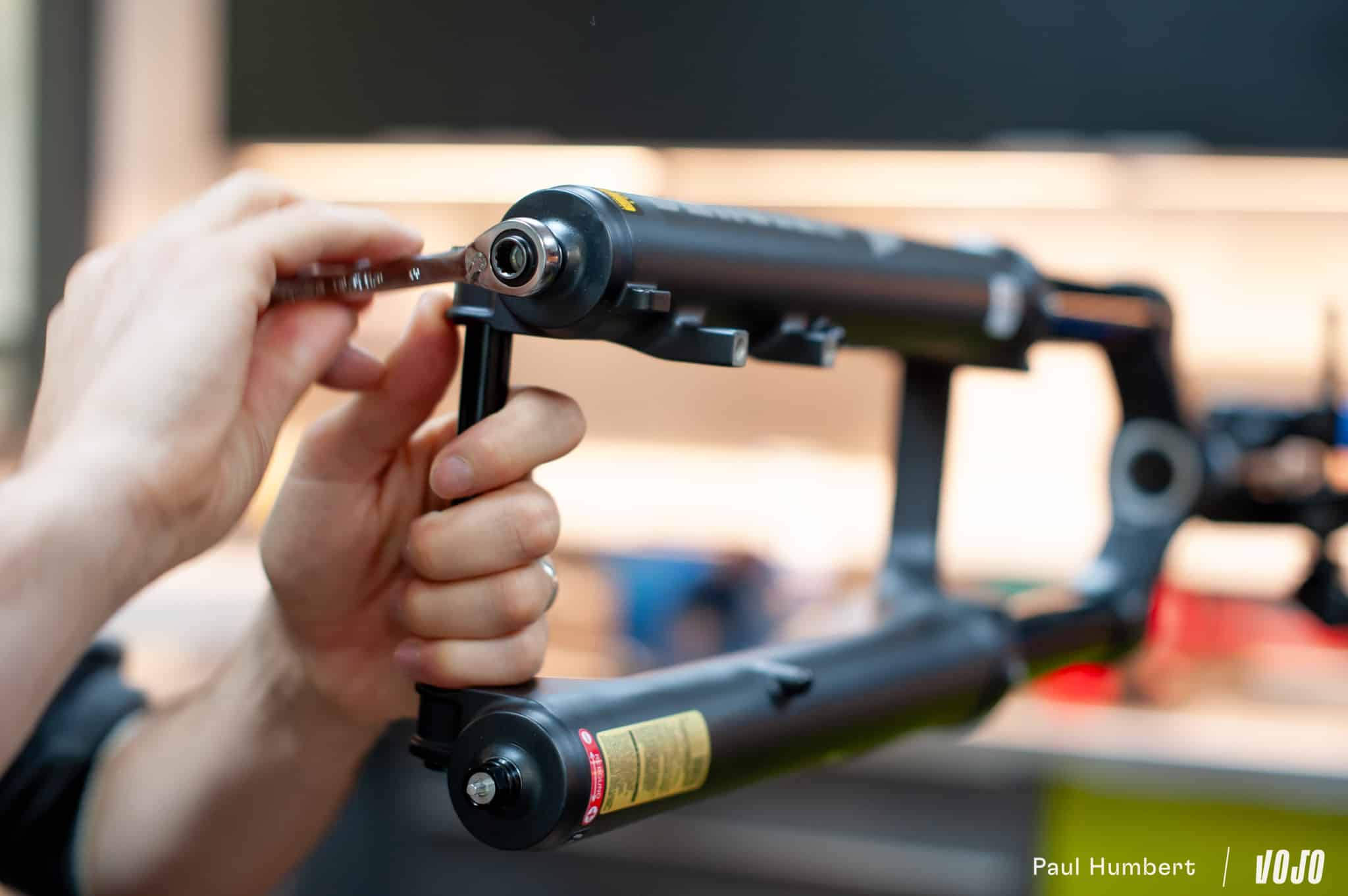 Parmi les caractéristiques qui ne changent pas, on pourra mentionner la présence de joints racleurs SKF à la réputation bien établie et celle des petits ports de dégazage à l’arrière des fourreaux, présents sur les Durolux depuis 2016. En revanche, contrairement à ce qu’on peut voir chez d’autres marques, l’intervention ne se fait pas sans outil : il faut une petite clé hexagonale pour les ouvrir.