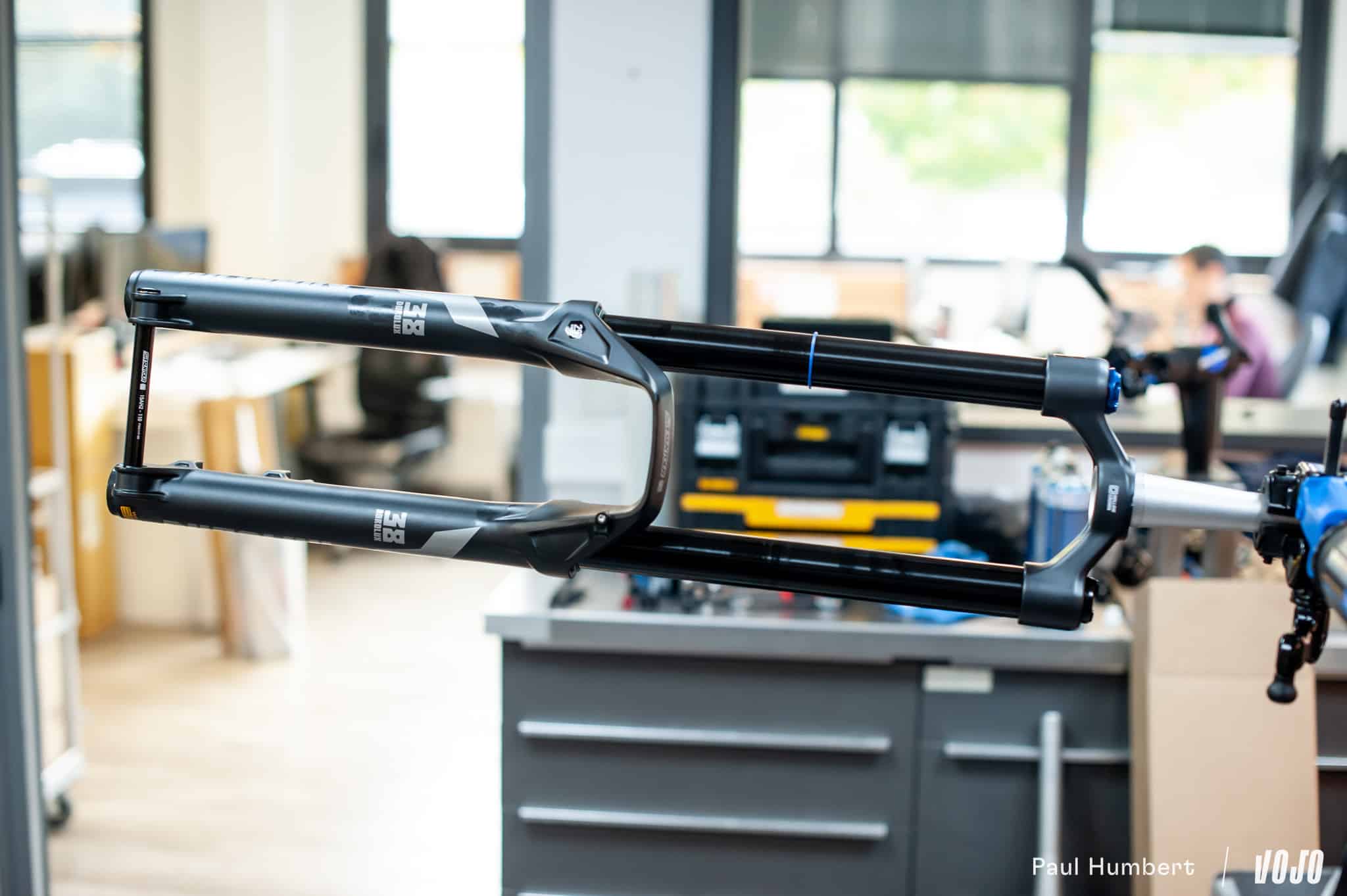 On commence par ce qui se voit le plus : la Durolux 38 reçoit un tout nouveau châssis avec des fourreaux plus légers et d’allure plus moderne, complété par une cosmétique plus moderne également. En revanche, pas de changement sur la rigidité : SR Suntour est satisfaite de ce qu’offrait la précédente génération et n’a pas jugé utile ou intéressant de faire évoluer ce point.