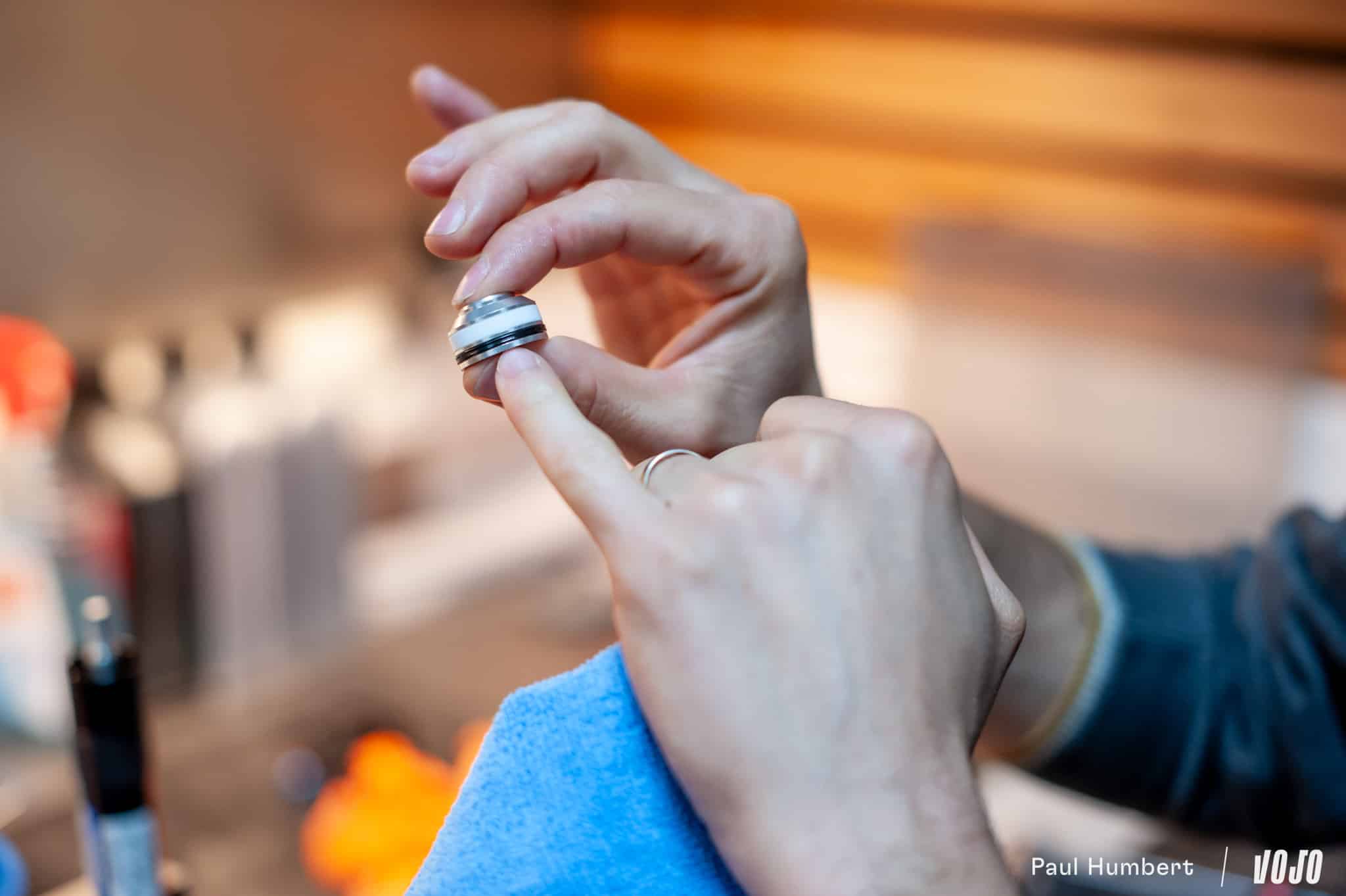 Dans les détails, on reste sur une cartouche fermée avec IFP mais on note un nouveau piston doté d’une bague anti-extrusion qui doit permettre un meilleur guidage ou encore un pointeau de réglage des compressions BV qui n’est plus monté sur ressort. La marque nous explique que cela fait moins de pièces pour l’assemblage mais aussi un flux d’huile plus simple, ce qui permet à son tour de mieux contrôler le passage de l’huile du circuit basses vitesses au circuit hautes vitesses. Grâce à cette gestion plus précise, la cartouche serait beaucoup plus confortable que la R2C2 et il serait aussi plus facile d’appréhender les changements de réglage sur la molette des basses vitesses en « test parking », sans perdre en performance sur le terrain.