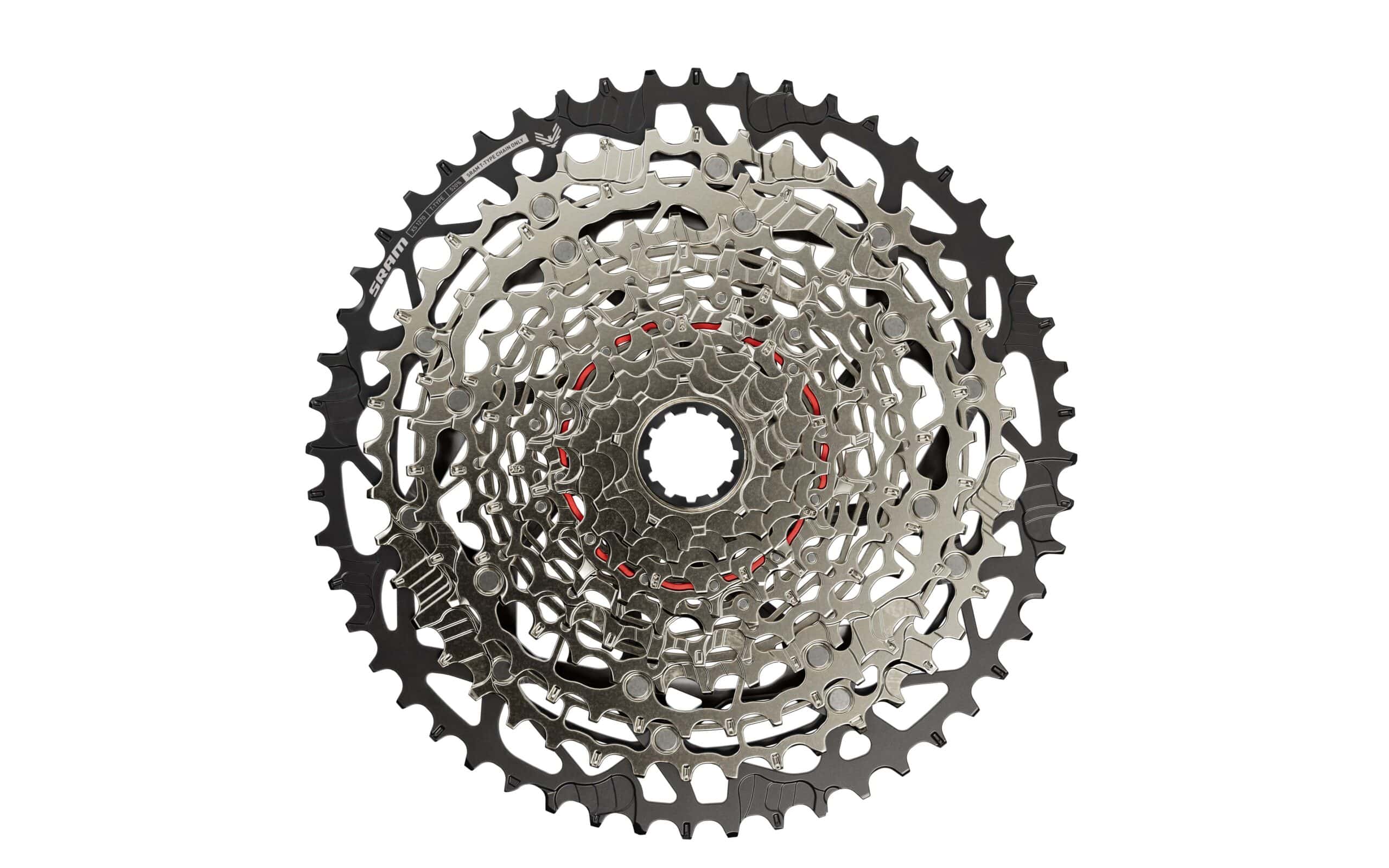 Sans connaître la différence de prix ou de poids entre cette cassette XS-1270 et la XS-1275 (à savoir celle du groupe GX), difficile de différencier ces deux options tant elles se ressemblent ! Cette cassette XS-1270 bénéficie du même étagement 10-52t ainsi que de la technologie X-Sync et de ces cheminements directement gravés dans les pignons pour guider parfaitement la chaîne dans ses déplacements.