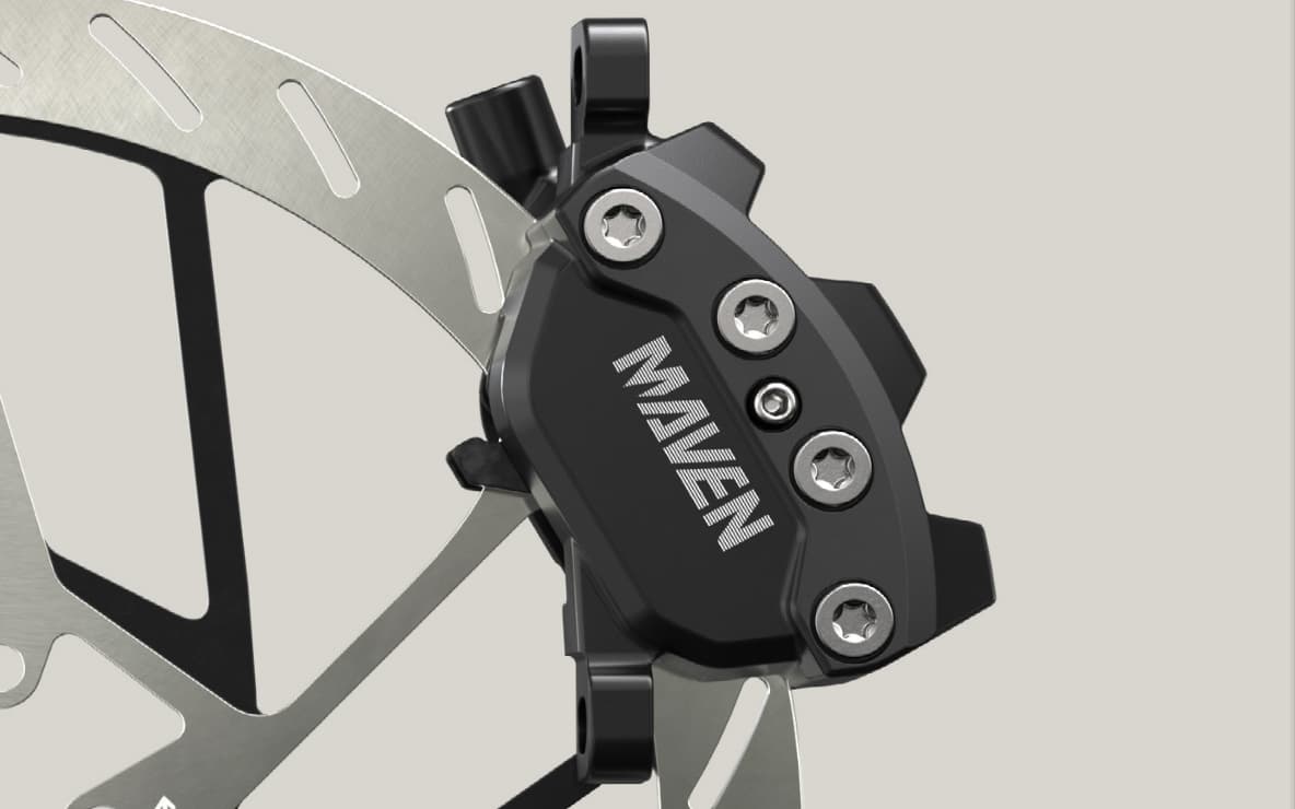 Par rapport aux Maven, ces Maven Base se distinguent par un étrier à quatre pistons de 18 mm (18,5 et 19 pour les Maven) et un levier à système DirectLink (au lieu de SwingLink) « Par rapport au reste de la collection Maven, il en résulte une puissance légèrement moins progressive dans l’ensemble, mais un ressenti très similaire dans la majorité des scénarios de freinage », détaille Benjamin Crowe, manager produit du segment frein de la marque.