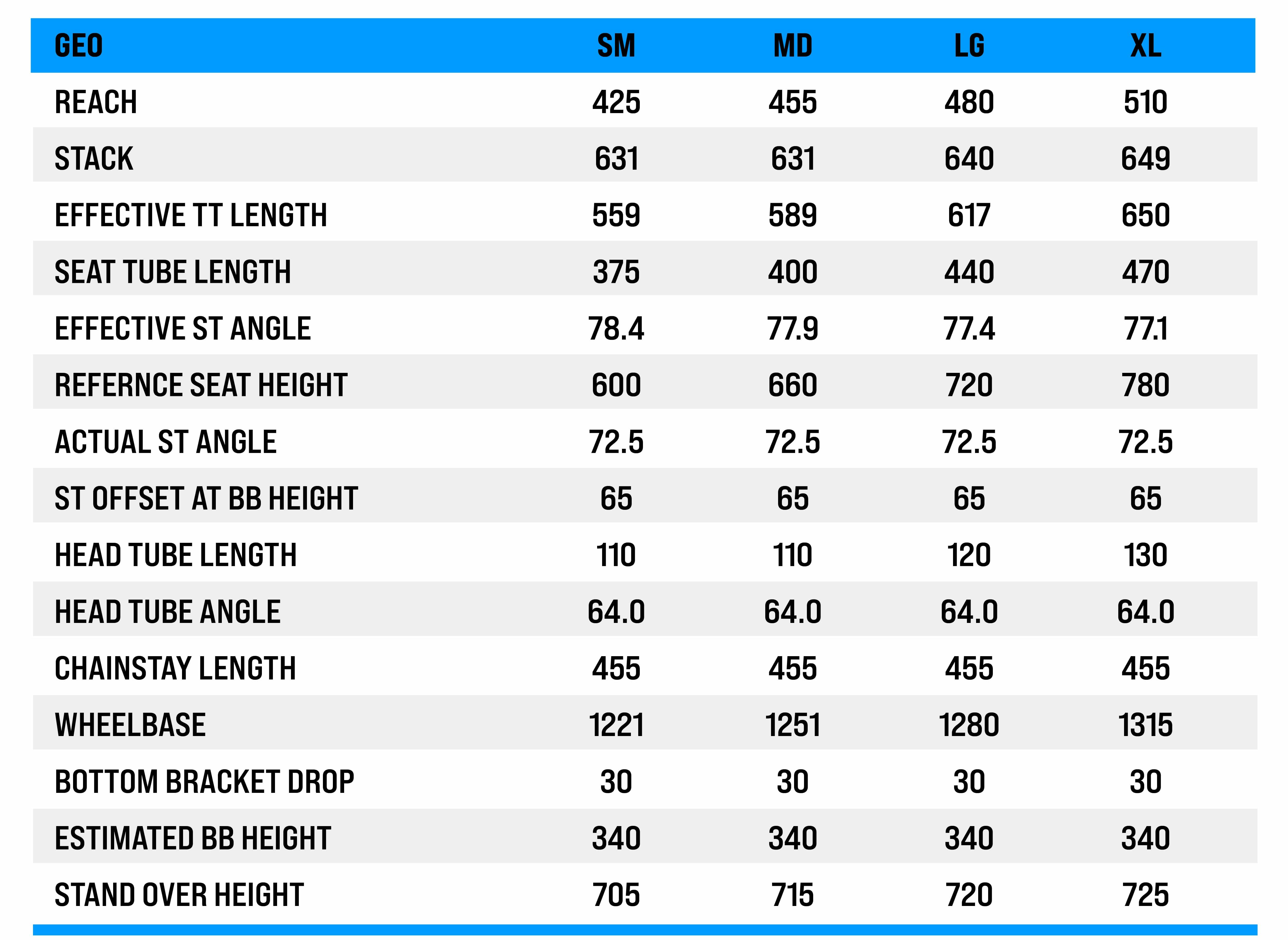 Transition lui a appliqué les mêmes concepts SBG Geometry et GiddyUp Suspension (progressivité autour de 25 %, prévue pour un sag entre 28 et 34 %) qu’à ses autres vélos, et on retrouve donc des cotes proches de celles… du Sentinel, à l’exception de bases plus longues pour laisser de la place au moteur. Le Repeater affiche ainsi un angle de direction de 64°, un angle de tube de selle qui va de 78,4 ° (taille S) à 77,1° (taille XL), un reach de 455 mm en taille M et des bases de 455 mm également.