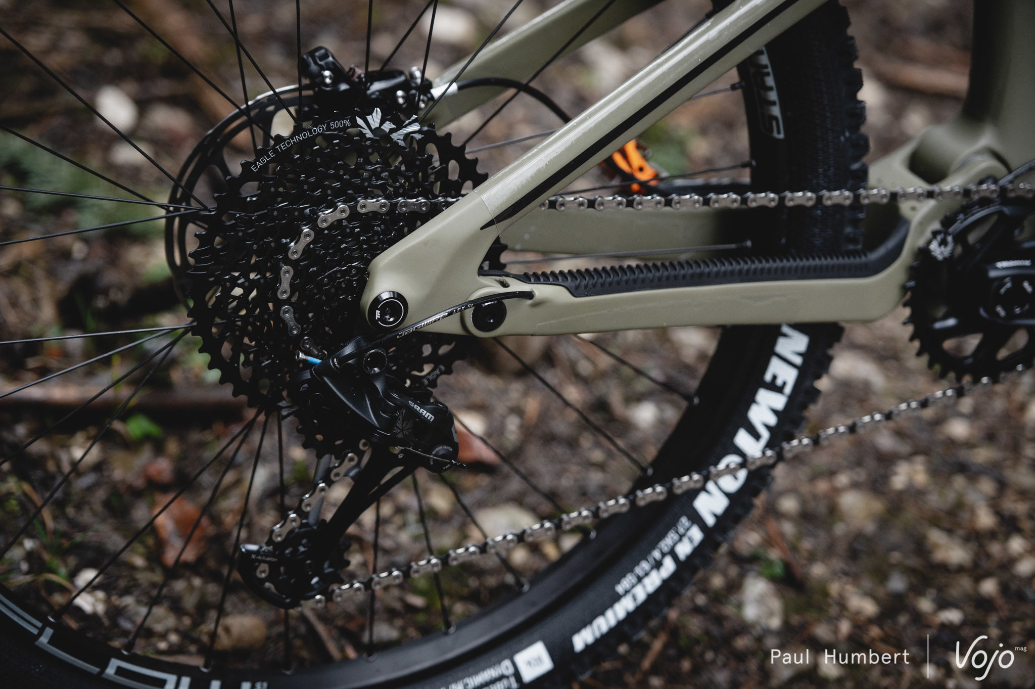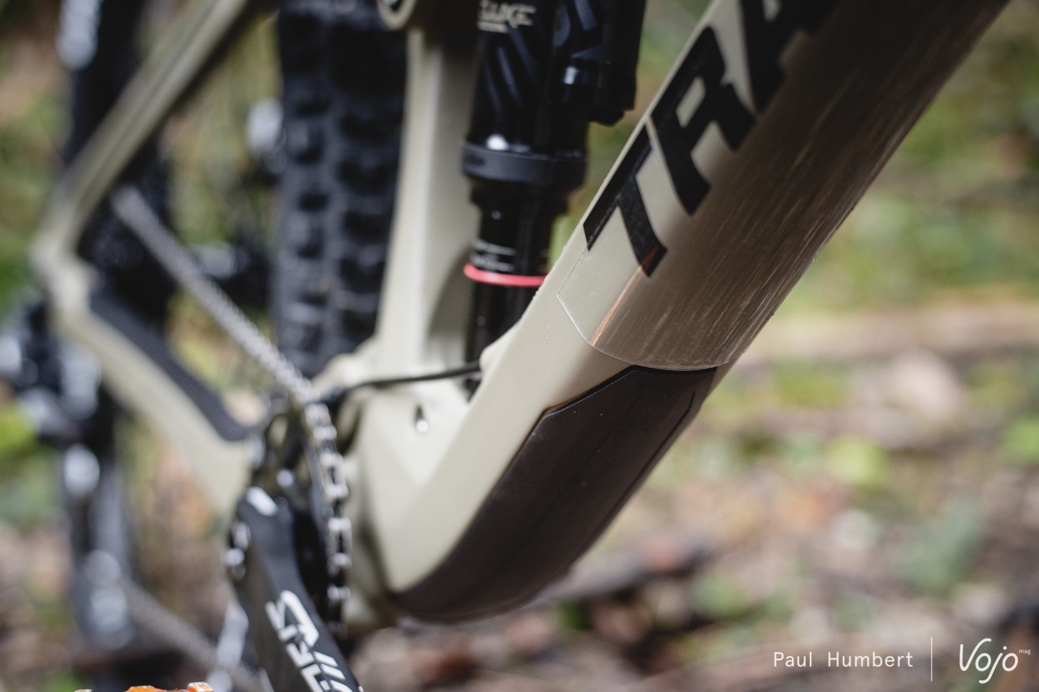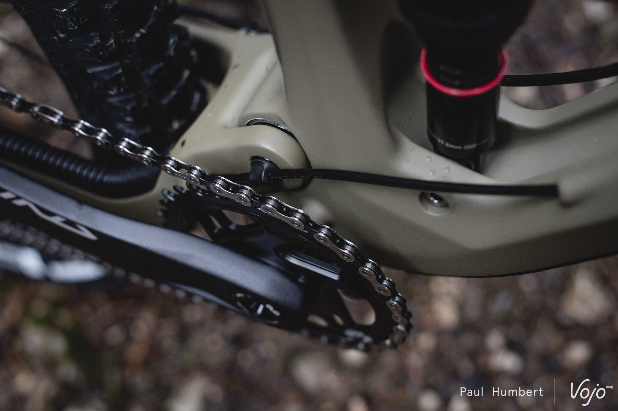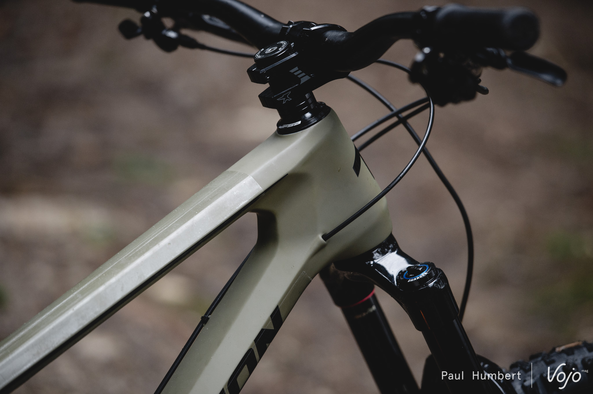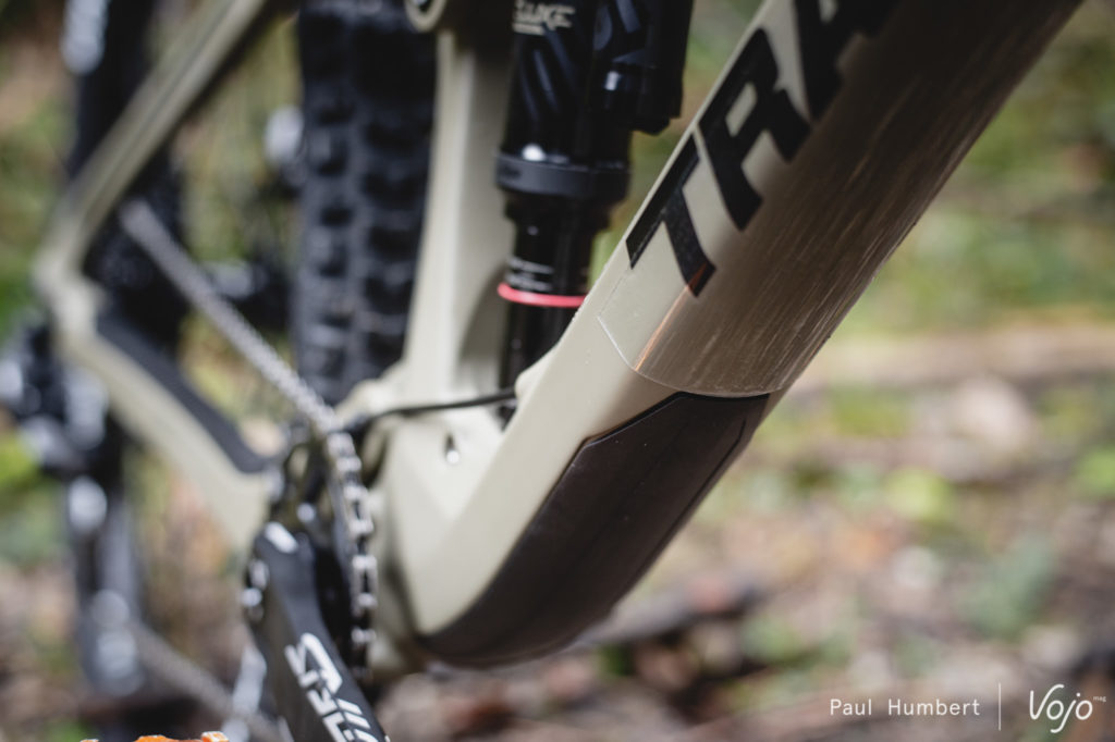 Dans cette couleur mate Olive Green, la finition est tout simplement excellente et on voit rapidement que les ingénieurs ont le souci du détail. Les roulements sont de belle taille et bien protégés tandis que le protège-base est très long et s’intègre en douceur dans le cadre, tout comme la protection du tube diagonal.