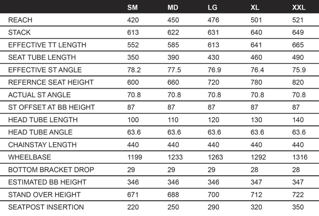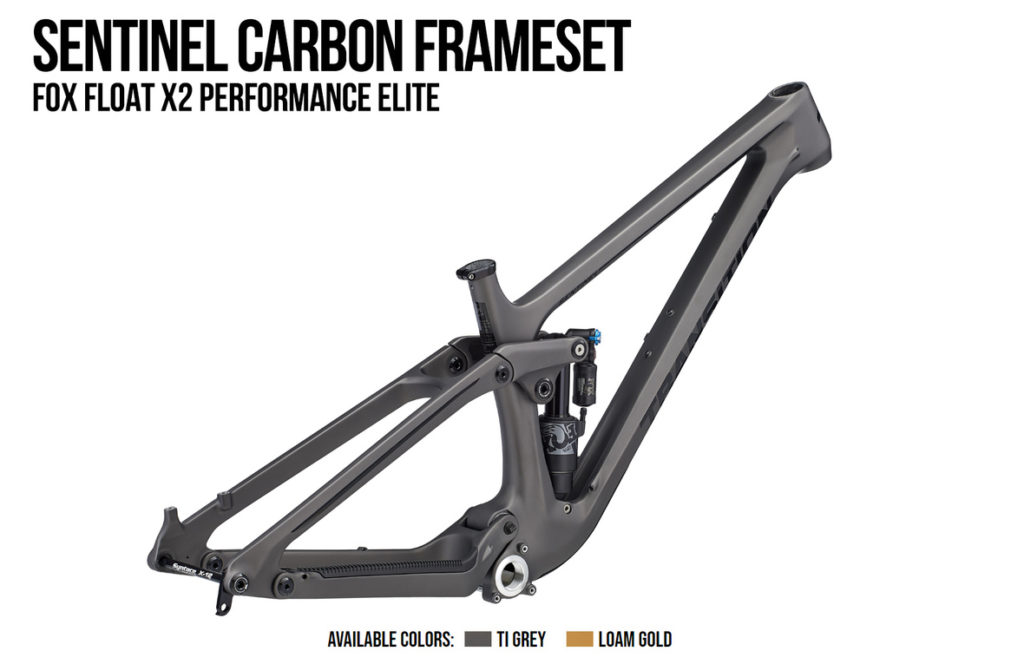 Parmi les autres informations intéressantes, on notera que le cadre du Sentinel peut accepter des pneus jusqu’à 2,6″ de section et dispose d’un tube de selle très court et très droit pour accueillir des tiges de selle à long débattement : 150 mm en taille S, 180 mm en M et 210 mm de L à XXL.