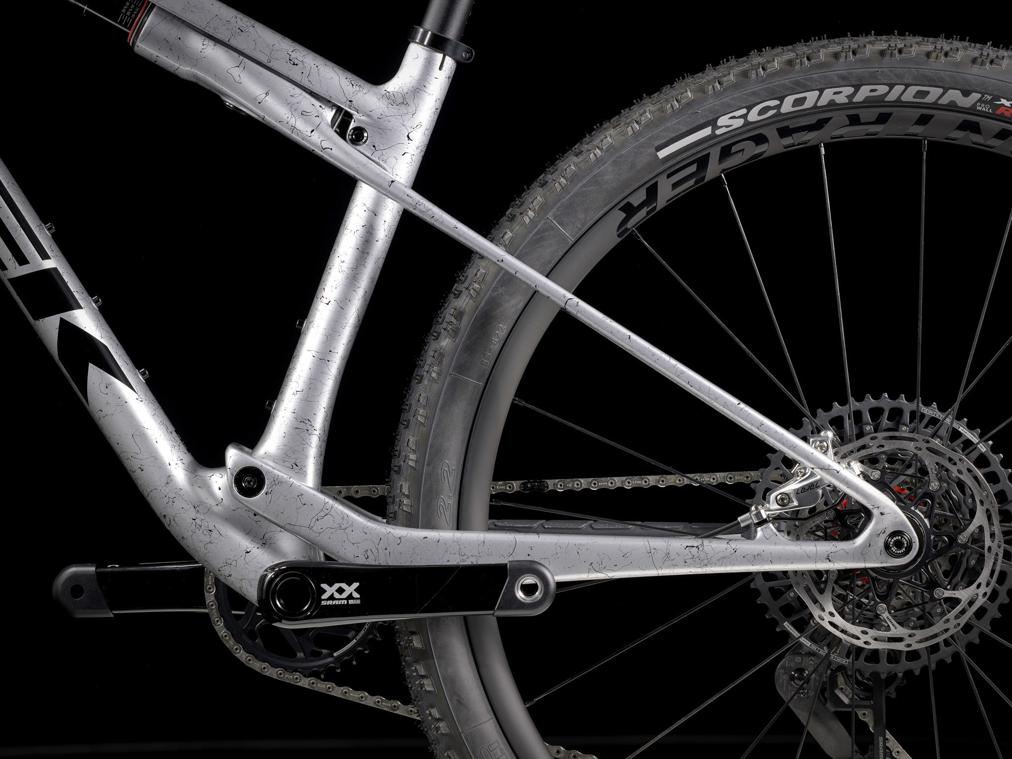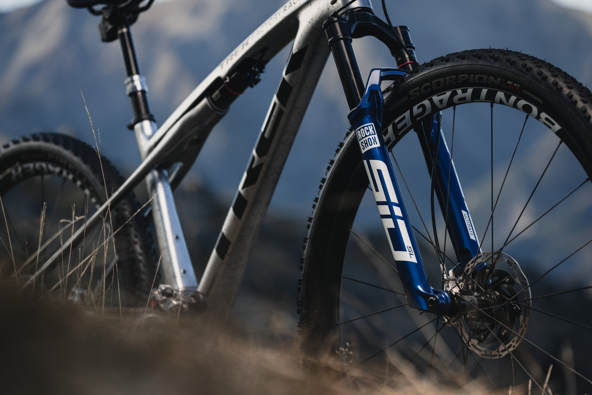 A l’avant, le SuperCaliber 2 gagne 10 mm et est désormais équipé d’une fourche en 110 mm de série. Trek précise toutefois qu’il est tout à fait possible de mettre du 100 ou du 120 mm selon ses besoins et sa pratique.