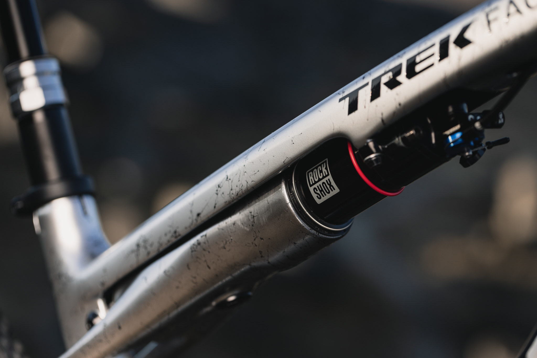 Pour ce faire, Trek a dû concevoir un nouvel amortisseur qui a cette fois été développé avec RockShox au lieu de Fox. Basé sur le SidLuxe, ses dimensions sont plus grandes que celles de l’ancien modèle (240×40 contre 235×32,5) et son plongeur plus gros (38 mm de diamètre) afin d’augmenter la rigidité du cadre et de permettre l’utilisation d’un piston plus gros, donc une meilleure gestion des flux d’huile.