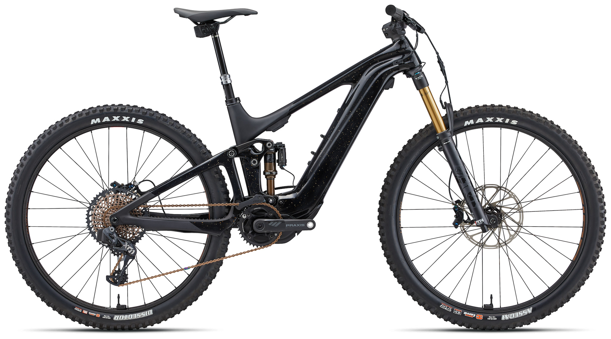 On termine avec un mot sur le Trance X Advanced E+ LTD, qui est donc le tout premier vélo de Giant à profiter de cette nouvelle batterie. Affiché à 12 800 €, il offre 150 mm de débattement à l’avant et 140 mm de débattement à l’arrière comme tous les modèles de la gamme mais se distingue avec un poste de pilotage en une seule pièce, un groupe complet Sram X01 Eagle AXS couleur cuivre, des roues Zipp 3Zero Moto ou encore une tige de selle télescopique RockShox Reverb AXS.
