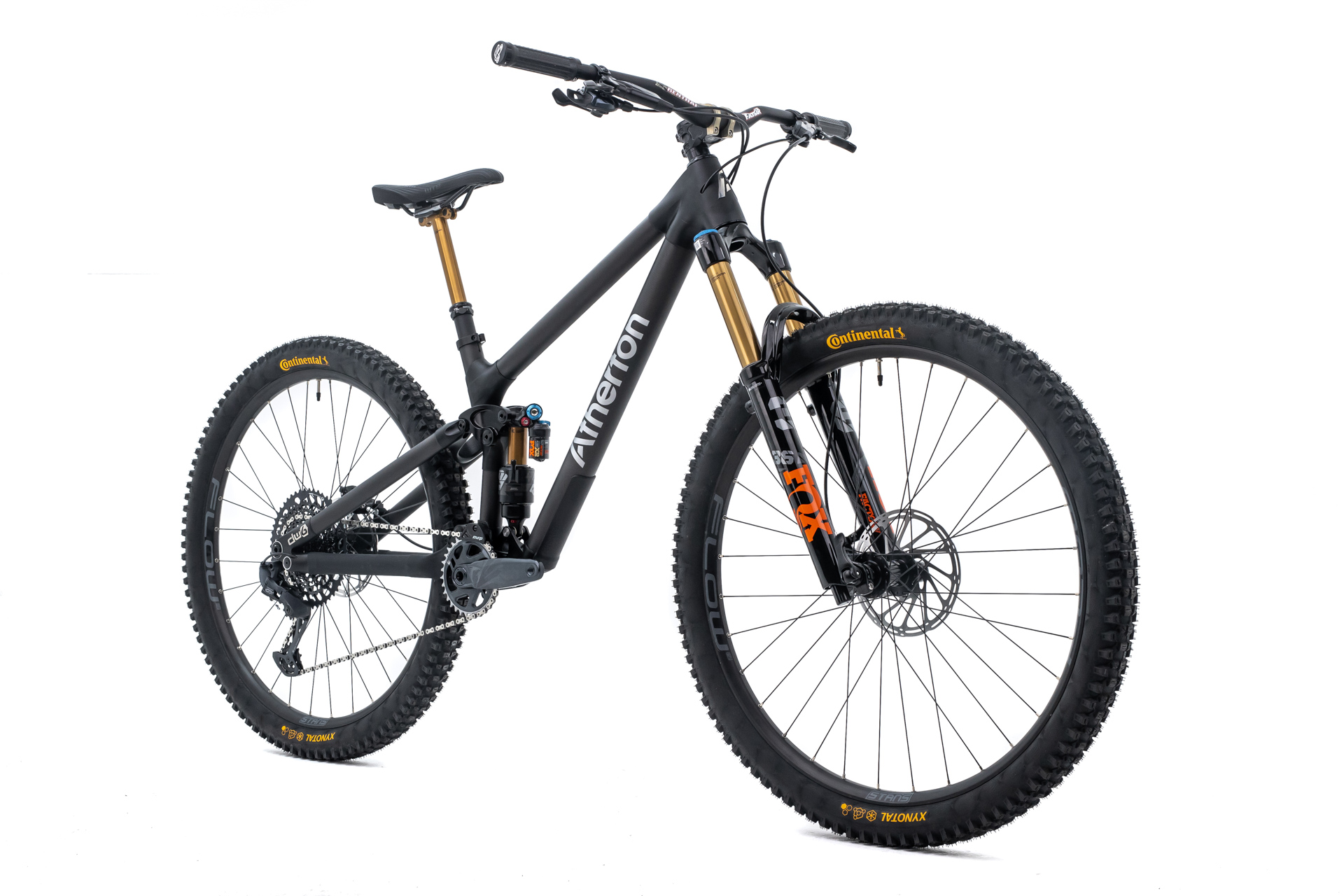 - AM 130 X (6.935€) : fourche Fox 36 Factory, amortisseur Fox Float X2, transmission Sram GX Eagle, freins Sram G2 RSC, roues Stans Arch MK3 montées de Continental Xynotal Trail et tige de selle télescopique Fox Transfer.