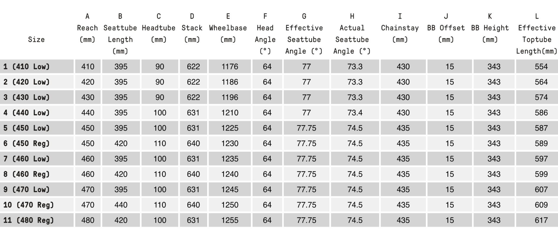 Comme la marque de la fratrie Atherton nous y a habitués avec l’ensemble de ses modèles précédents, Atherton Bikes propose une large gamme de taille afin d’offrir un ajustement au plus proche de la taille du pilote. Grâce au procédé de fabrication qui permet de couper facilement les tubes et de produire des raccords par impression 3D quasiment “sur mesure”, Atherton Bikes propose ainsi 22 tailles différentes pour cet AM 170. Chaque taille dispose d’un reach spécifique allant de 410 mm pour la plus petite taille à 530 mm pour l’autre extrémité, par saut de 10 mm par taille. L’angle de tube de selle démarre à 77° pour la plus petite taille, pour se finir à 78,5° en taille 22. Les bases arrière mesurent de 430 mm à 440 mm en fonction de la taille. La marque anglaise précise également qu’une option de « vélo sur mesure » est envisageable.
