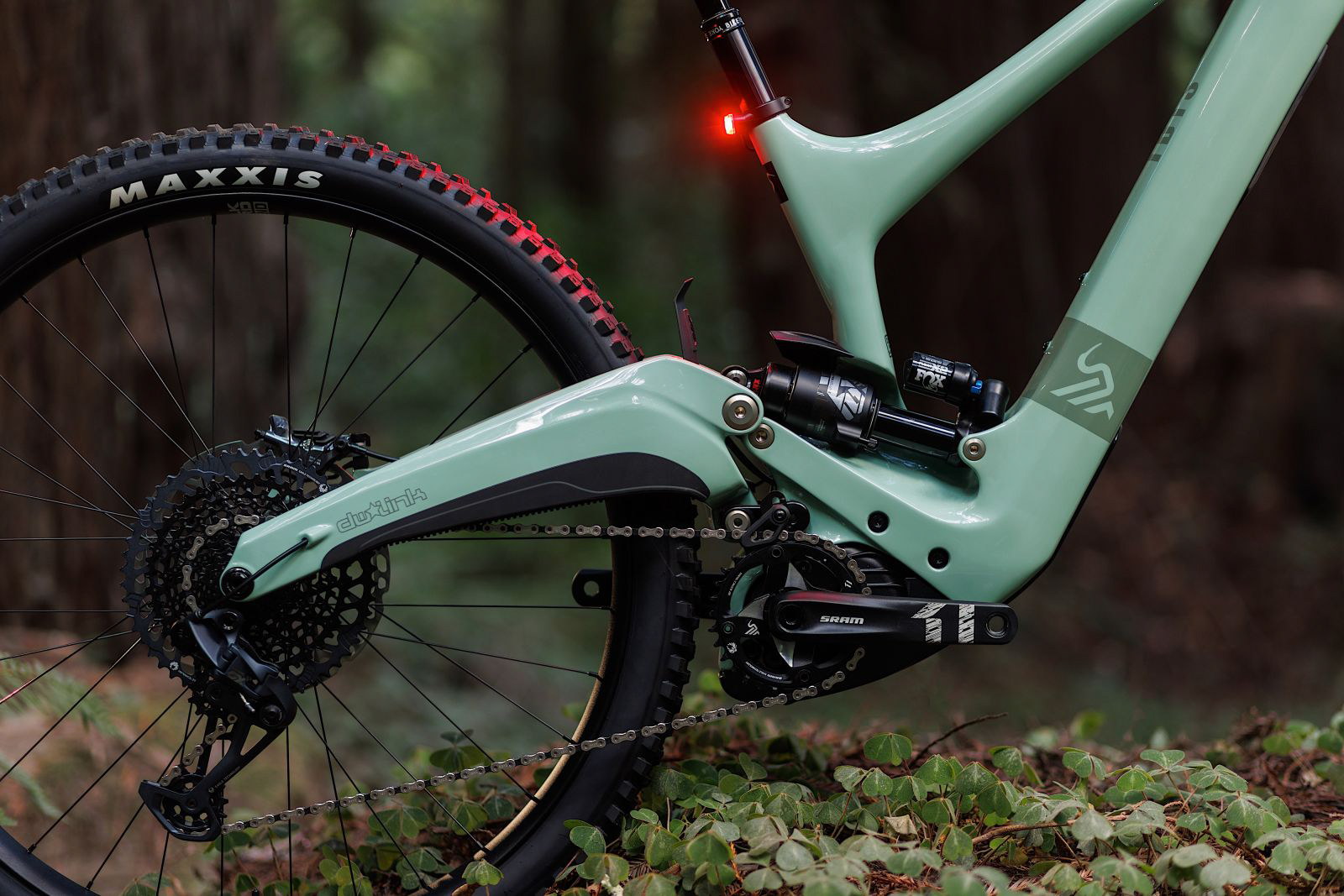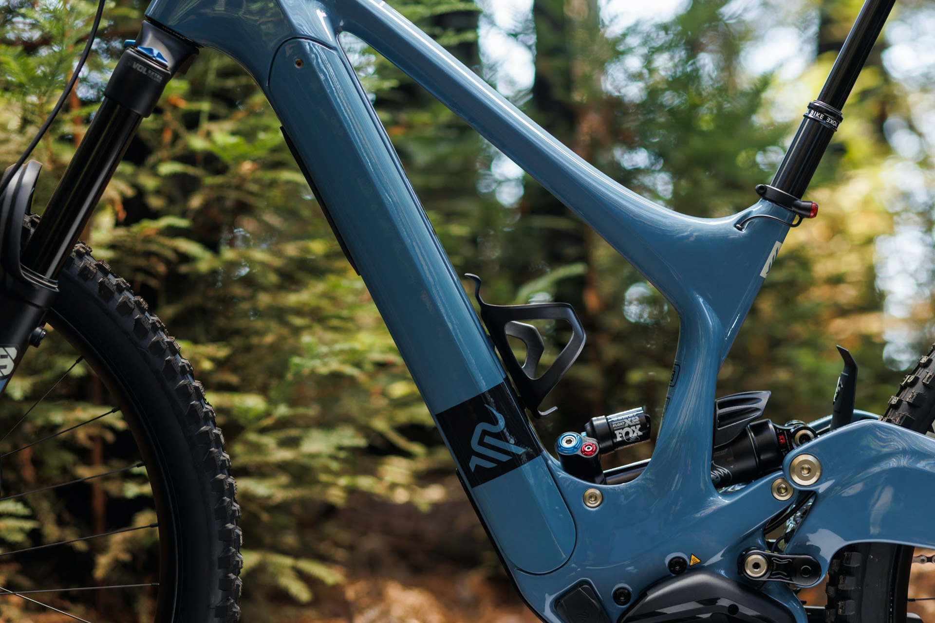 Au niveau des suspensions, Fox a choisi une fourche Float 38 Performance et un amortisseur X2 Performance Elite. Ce dernier est positionné de manière décalée, avec le cadre qui le contourne d’un seul côté (opposé à la transmission).