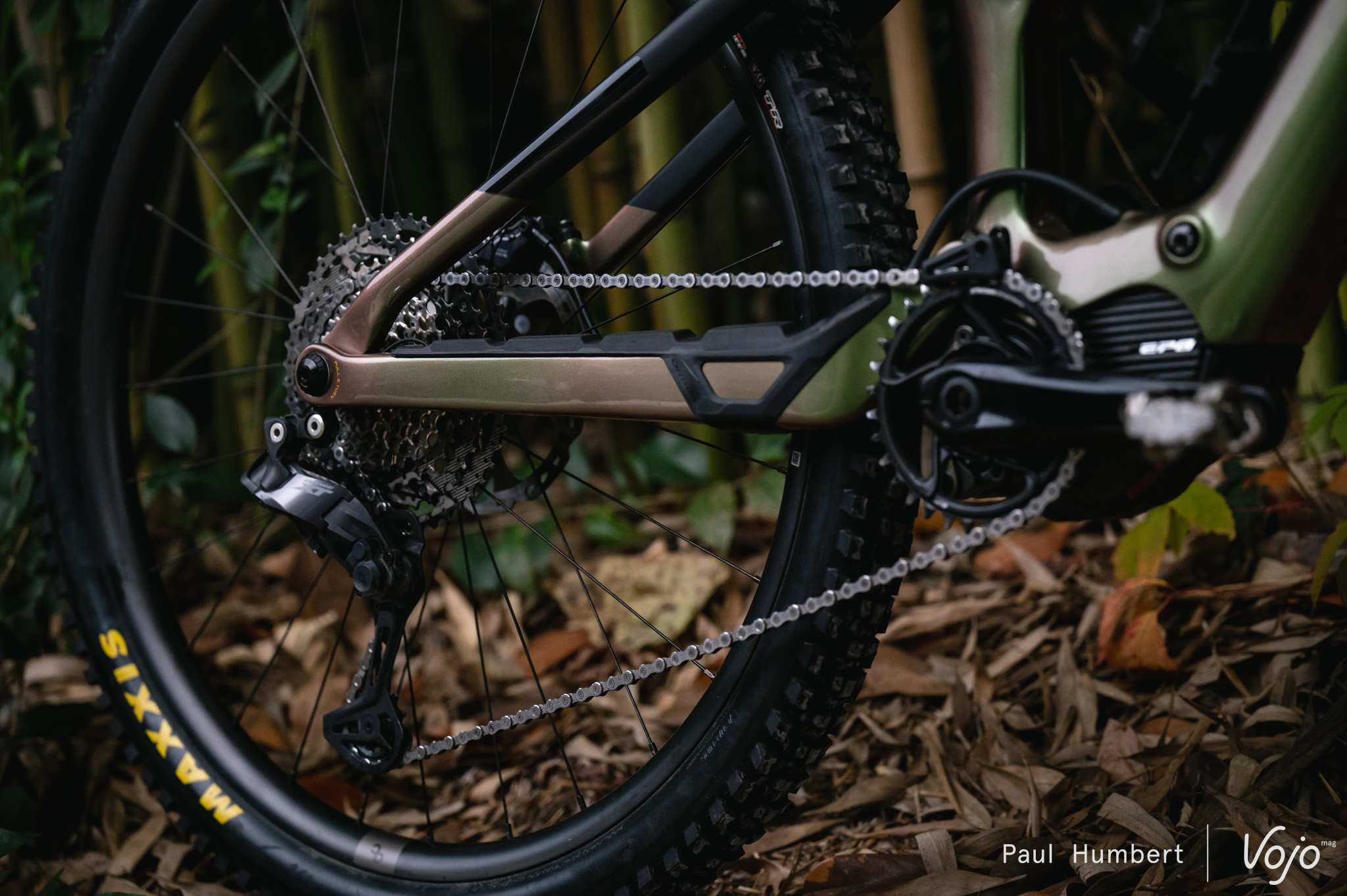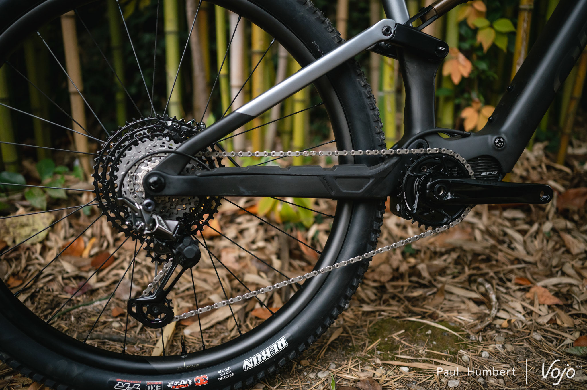 Si les lignes ne semblent pas avoir changé, le cadre en carbone OMR affiche pourtant un gain de 100 g sur la balance par rapport à son prédécesseur, avec un cadre à 2,2 kg en taille M (hors batterie et motorisation).