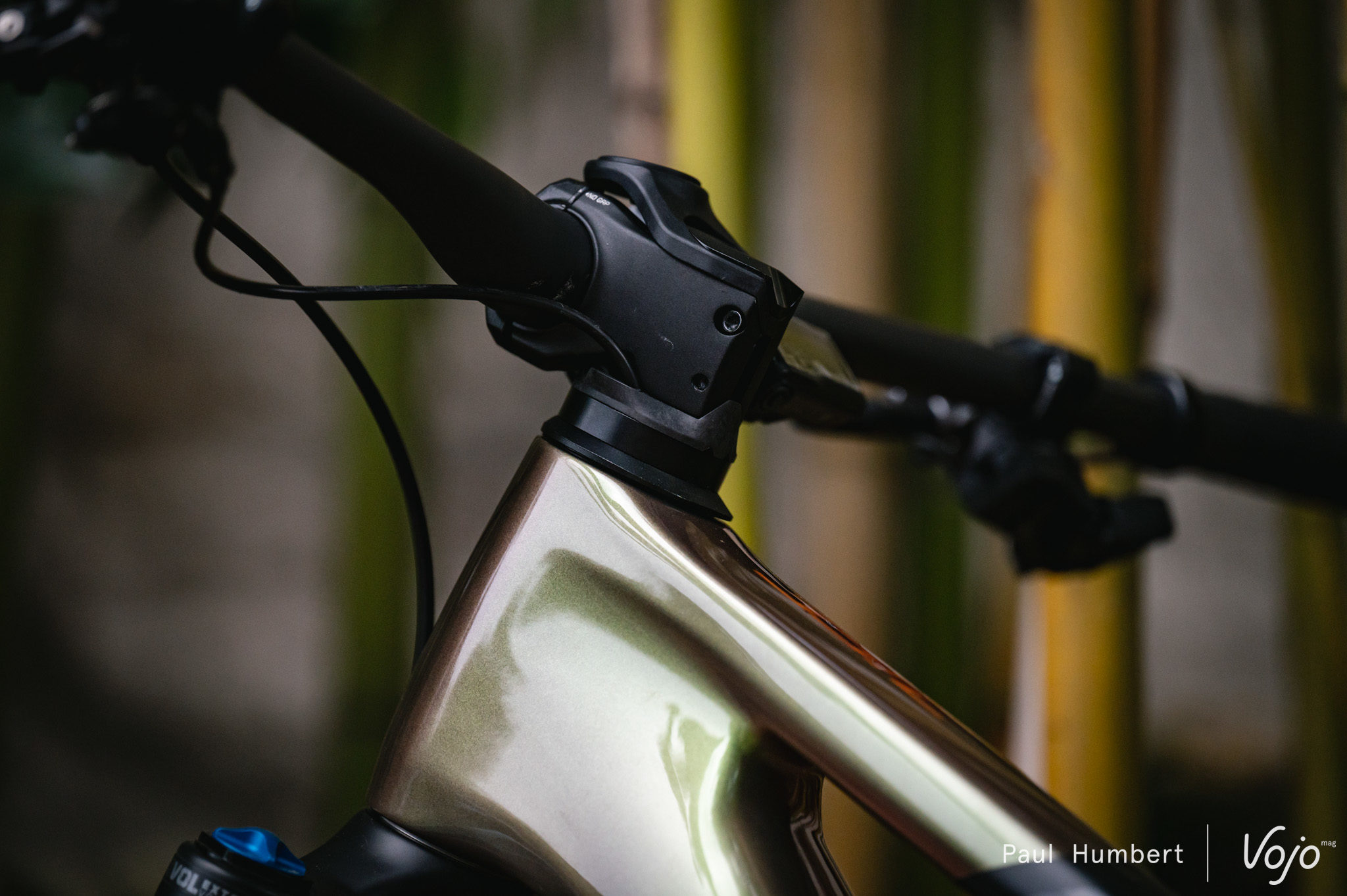 Côté géométrie, le reach se maintient à 474 mm en taille L, l’angle de direction est toujours de 66°/65,5° (en fonction du débattement de la fourche) et les bases conservent leur longueur de 445 mm… Bref la géométrie ne change pas.