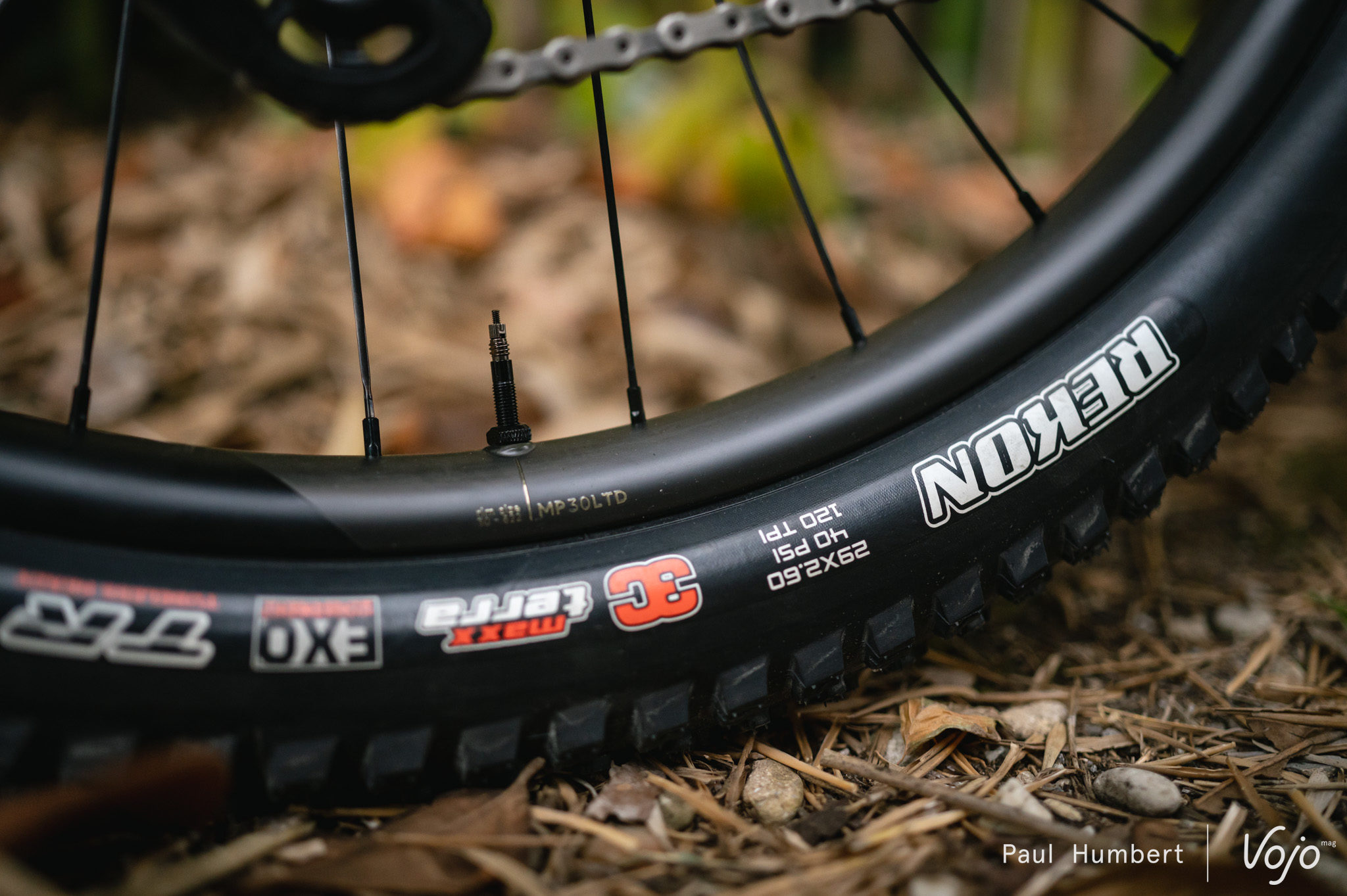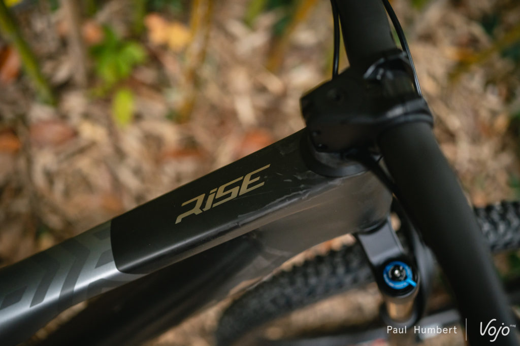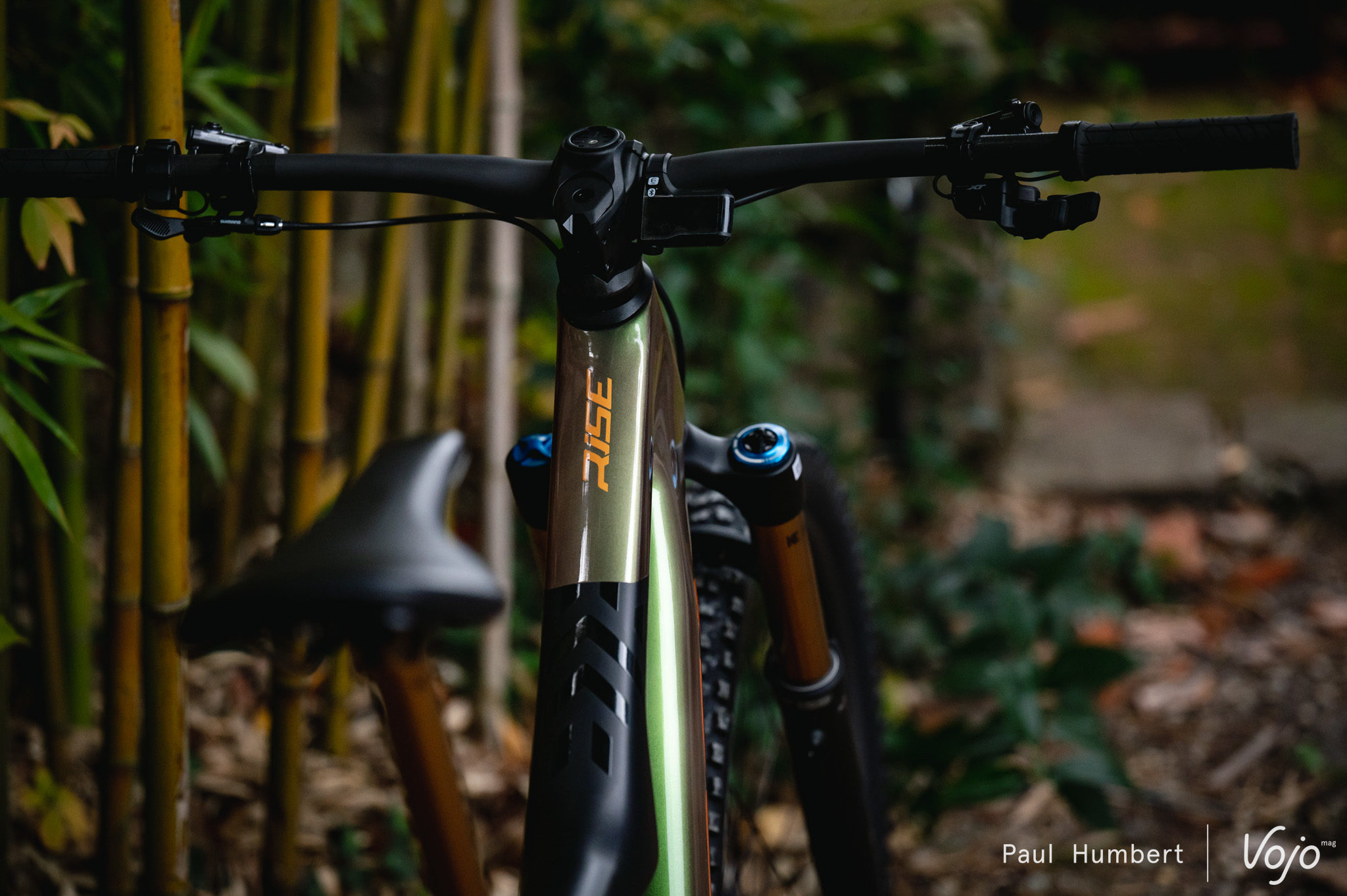 Sur ce Rise M-Team, il s’agit d’une paire de Oquo Mountain Control en carbone, chaussées de Maxxis Rekon 3C Exo à l’avant et Dual compound Exo pour l’arrière (à noter que 3 autres choix de paire de pneumatiques sont offerts par le configurateur en ligne de la marque).