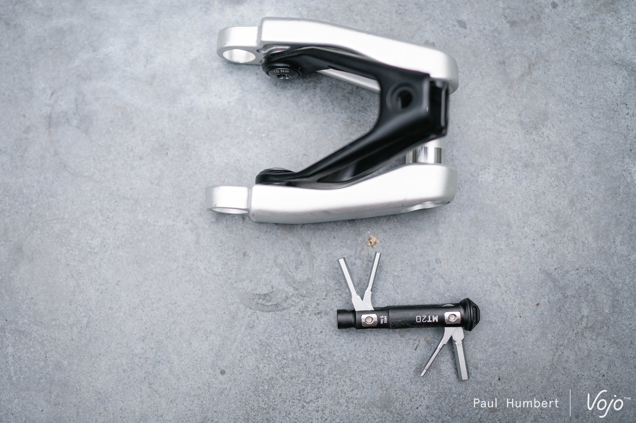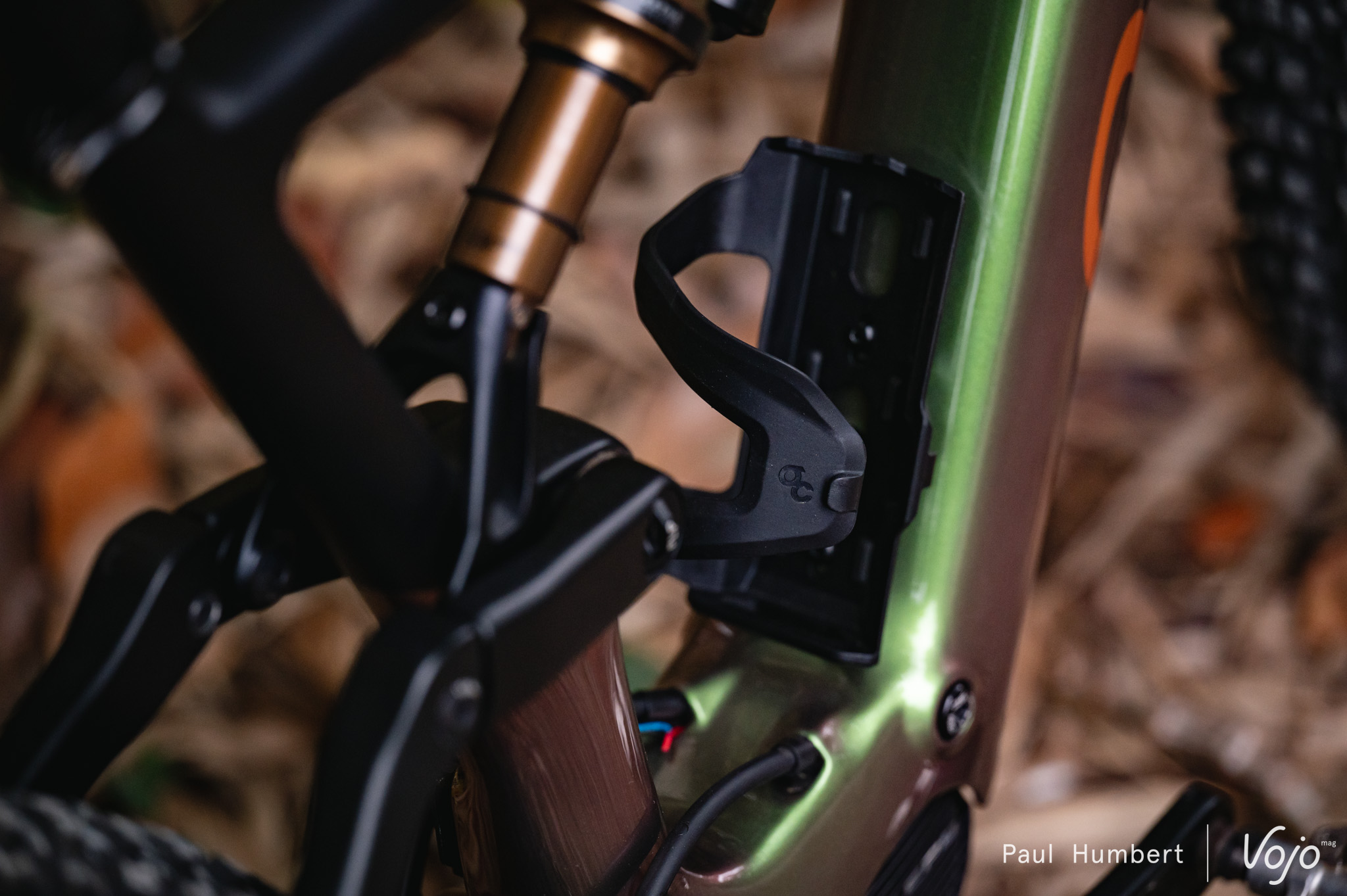 Au-delà d’un triangle avant allégé et rigidifié, c’est également un nouvelle biellette qu’Orbea offre à son Rise pour 2023. Elle passe de trois à deux pièces, et si elle ne modifie pas la cinématique, elle est par contre plus légère et épurée. Elle permet également d’y glisser un multi-outils de 4 clés Allen bien pratique.