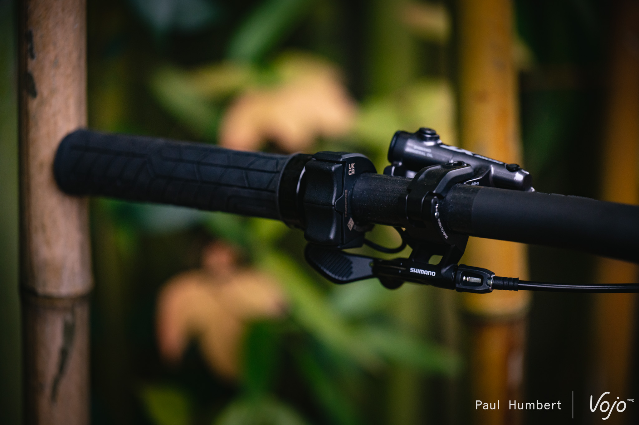 Surprise sur le poste de pilotage épuré, on ne retrouve plus ce minuscule indicateur à diodes qui ne nous avait que moyennement séduits sur l’Orbea Rise premier du nom. Désormais tout se passe au niveau de la commande à main gauche. Celle-ci permet toujours de naviguer entre les trois modes d’assistance à l’aide de ses deux principaux boutons, mais ceux-ci sont désormais accompagnés de deux petites LED relatives à l’état de la batterie et du mode d’assistance dans lequel on se trouve. Vous l’avez peut-être remarqué (lors de la présentation du « Range Extender » notamment) mais le bouton de mise en marche, qui se logeait anciennement juste au-dessus du moteur, a également déménagé sur cette commande au guidon.