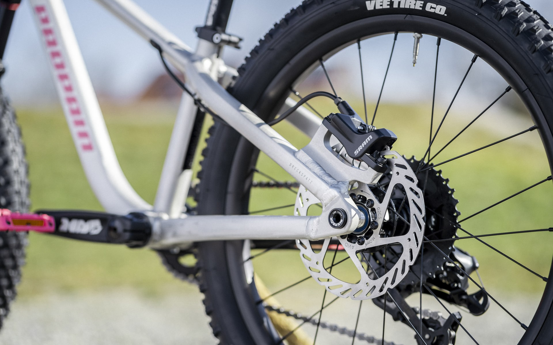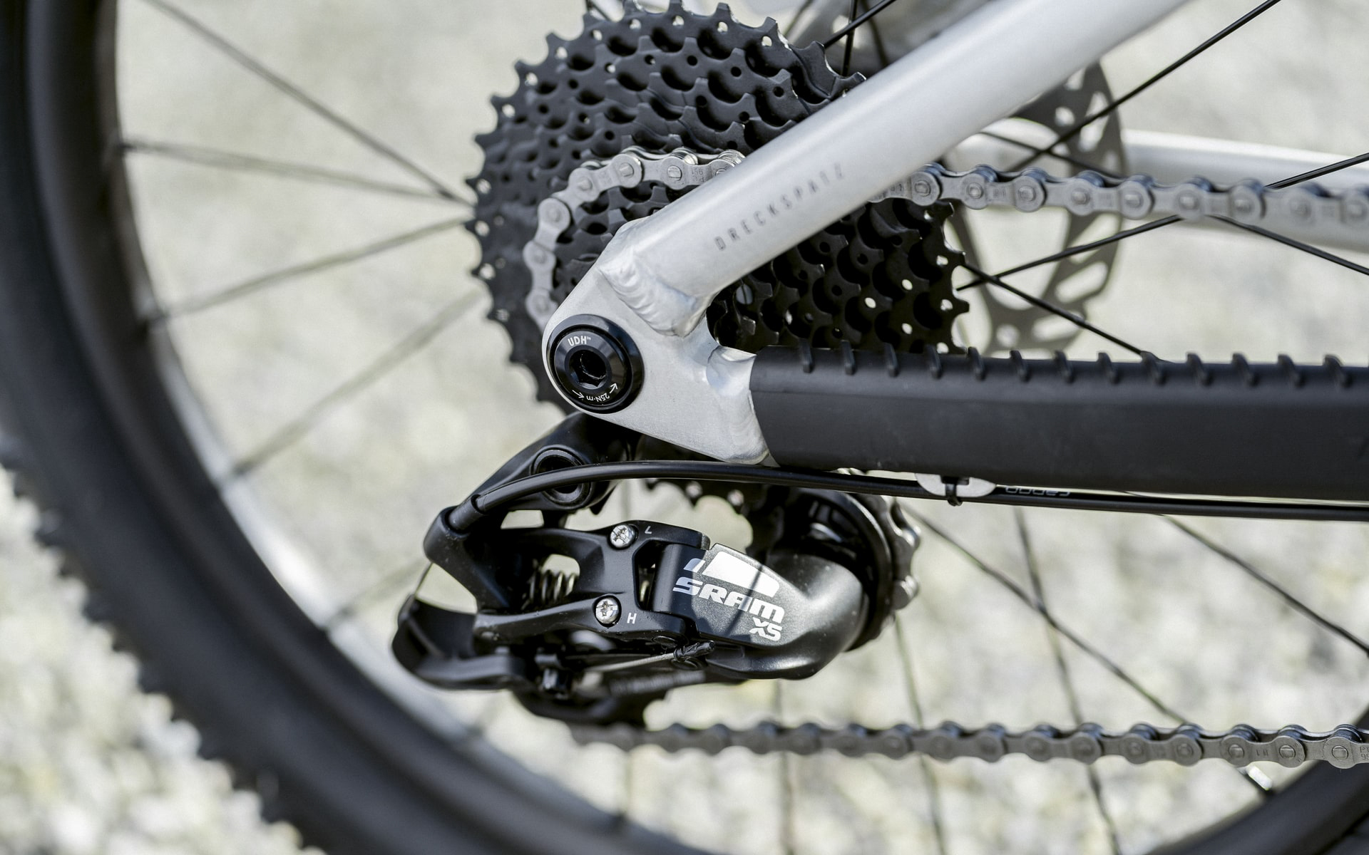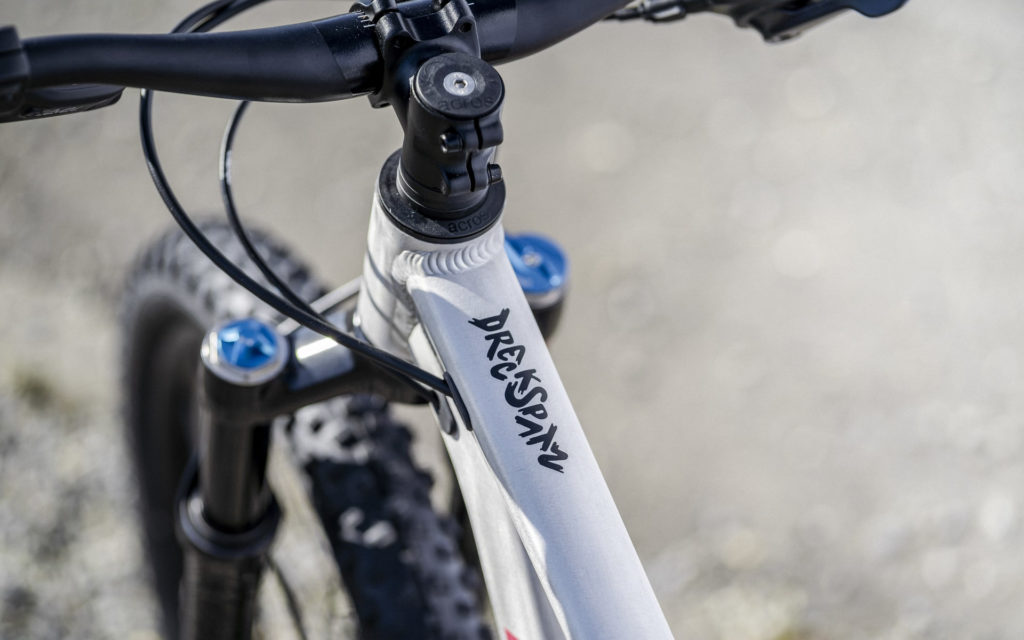 Comme pour le Frechdax, ce modèle hardtail dispose d’un cadre en aluminium doté d’un passage interne des gaines ainsi qu’une patte de dérailleur universelle (Sram UDH). Pas de différence non plus au niveau de la fourche puisque c’est exactement la même 1st Ride de 80 mm de débattement que l’on retrouve sur ce Dreckspatz.