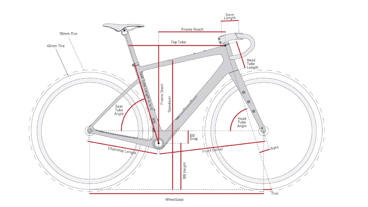 Convaincu de la supériorité des roues en 700c sur celles en 650b, Enve s’est « engagé à concevoir le MOG de manière à pouvoir utiliser de gros pneus 700c, tout en éliminant le besoin de flip-chip ou d’autres solutions pour accueillir deux tailles de roues différentes » explique Jack Pantone. Le MOG accepte ainsi des pneus jusqu’en 50 mm de section, même si la géométrie est optimisée pour le créneau 40-44 mm.
