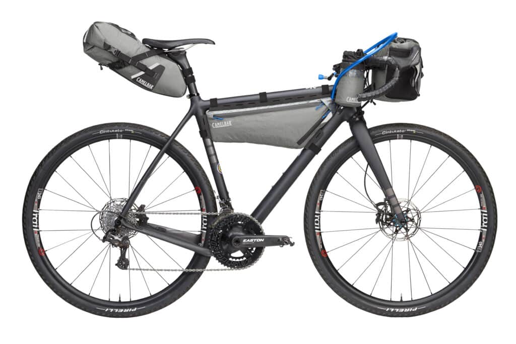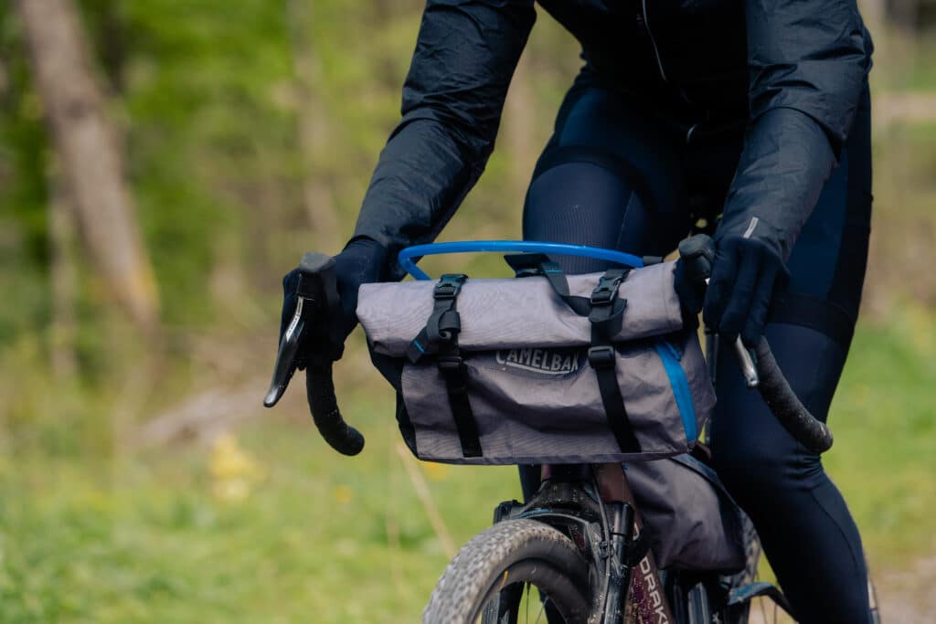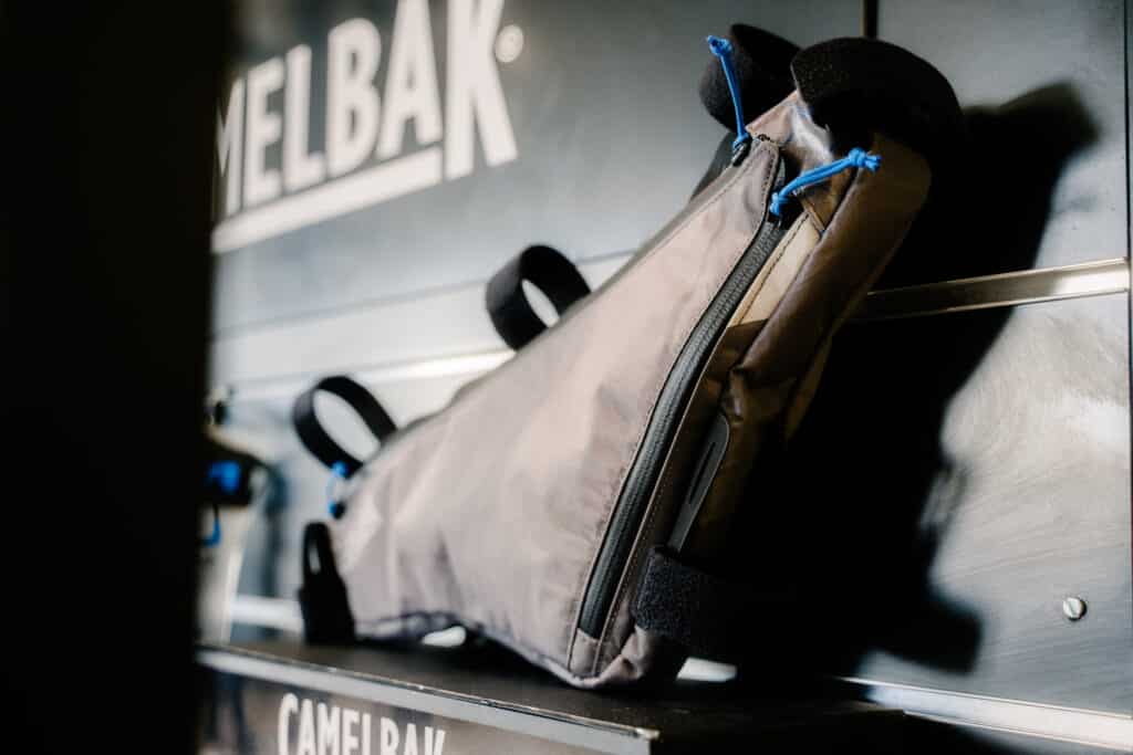 Une fois les deux extrémités équipées, il ne reste plus que le centre et pour cela CamelBak propose une sacoche de cadre intégrant un système d’hydratation (également disponible à la vente sans la sacoche).