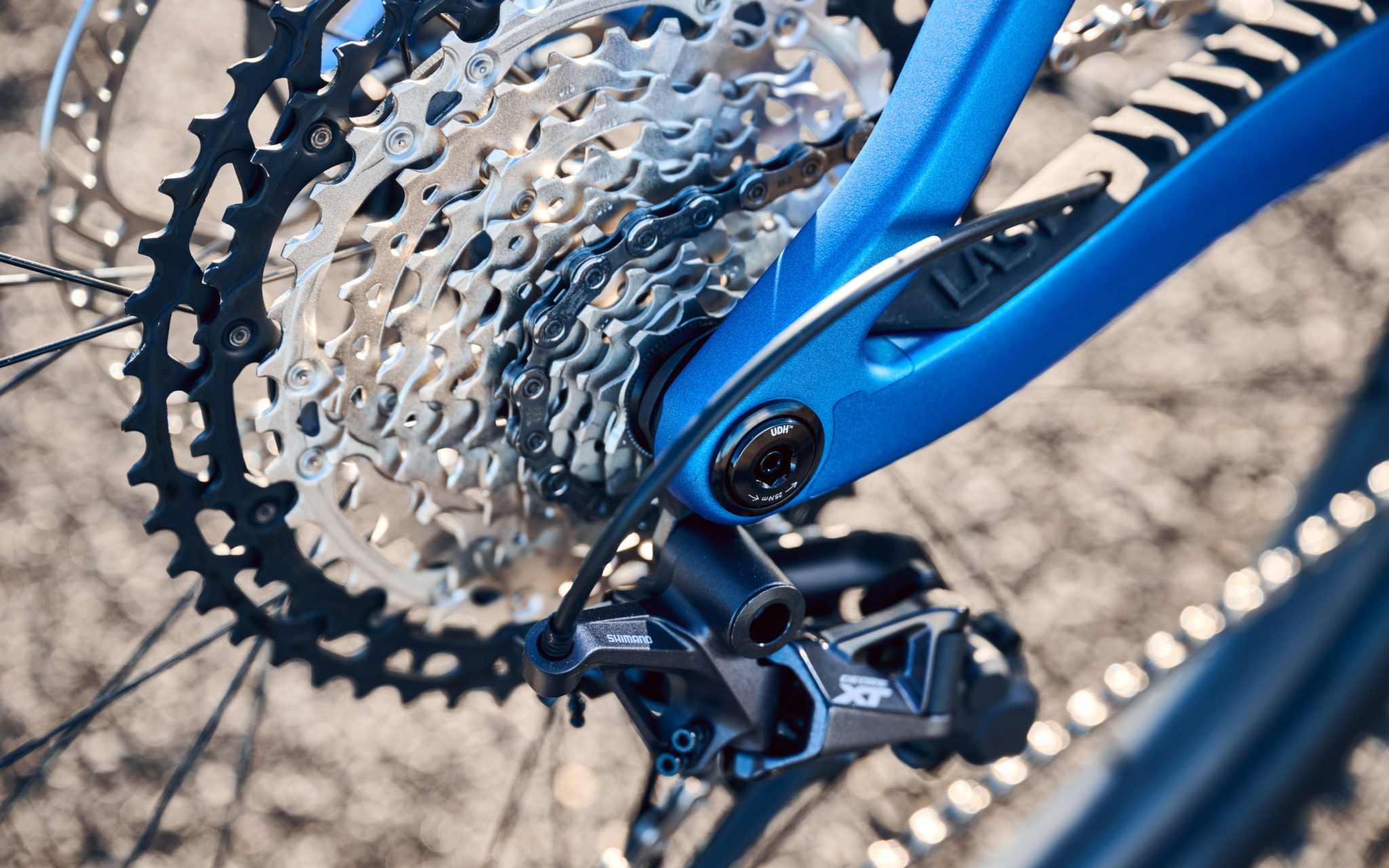 Le frein arrière prend, quant à lui, toujours place entre la base et le hauban, toujours au standard Postmount également, mais avec la possibilité de monter un disque jusque 203 mm de diamètre désormais (là où le cadre de la première génération n’acceptait que jusque 180 mm).