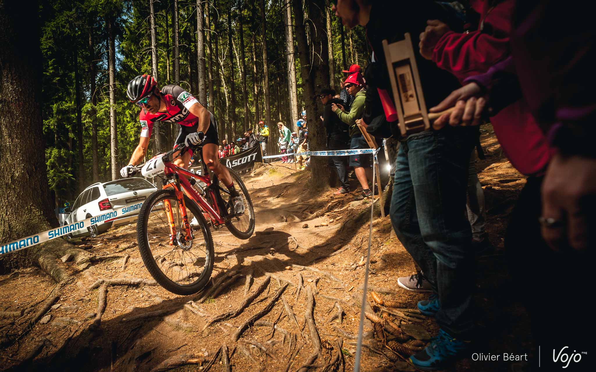Le coureur du team MMR a été le seul à réussir à accompagner Schurter et, même s’il s’est fait distancer dans les derniers tours, il n’était pas loin et il aurait pu profiter d’une erreur du champion du Monde.
