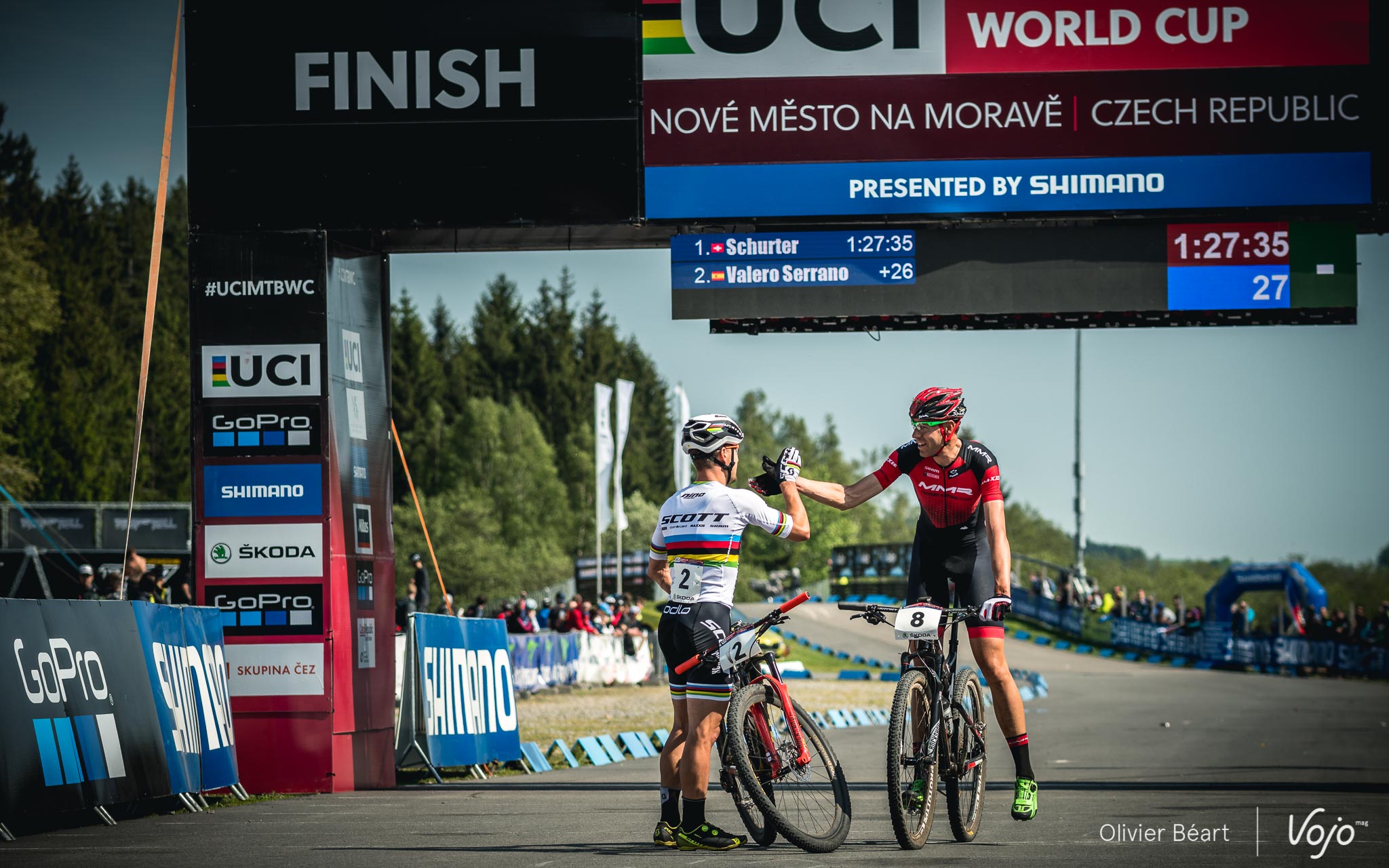 La course Elite Hommes de Nove Mesto a encore une fois été particulièrement intense ! Si Nino Schurter était bien le plus fort et l’emporte logiquement, l’Espagnol Valero a bien joué le rôle de « poil à gratter » pour le Suisse… et les deux hommes devancent une impressionnante armada de 5 Français avec Absalon, Marotte, Sarrou, Tempier et Carrod. Puis, juste derrière, Mathieu Van Der Poel qui a signé un authentique exploit ! En attendant notre grand portfolio, voici déjà les résultats et les premières infos :