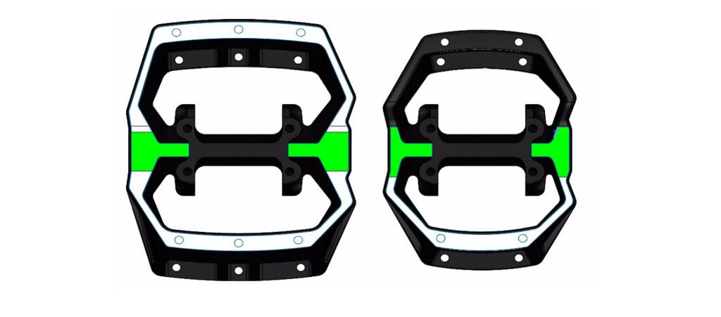 La pédale Horizon CL aura une cage assez large pour offrir un maximum de soutien pour les pratiquants de descente et d’enduro. La version CS sera quant à elle plus petite et plus en accord avec les pratiquants des disciplines « trail » et « all-mountain » où les besoins de soutien sont un petit peu moins importants.
