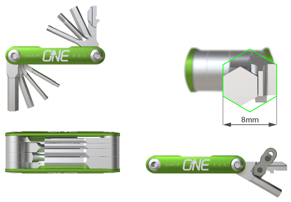 Dans le système EDC, on retrouve des clés Allen en plusieurs dimensions, une Torx en T25, un démonte-pneu, un tournevis à tête plate, des clés à rayon, un dérive-chaîne, une pince permettant de démonter une attache-rapide 10 ou 11v, un emplacement pour ranger une attache-rapide de rechange, un démonte-obus ou encore, au choix, un espace de rangement étanche ou une cartouche CO2.