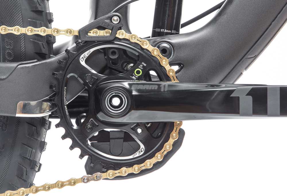 Pas besoin de retirer les manivelles, et l’opération ne prend paraît-il que 20 secondes. Ce système tire parti de la conception de la plupart des manivelles récentes, dont l’étoile est amovible. Le OneUp Switch peut ainsi s’adapter sur des pédaliers Sram, Race Face, Hope, Cannondale et E13 (mais pas Shimano car l’étoile est solidaire des manivelles). Côté plateau, les dentures proposées vont de 28 à 36 en rond ou ovale.