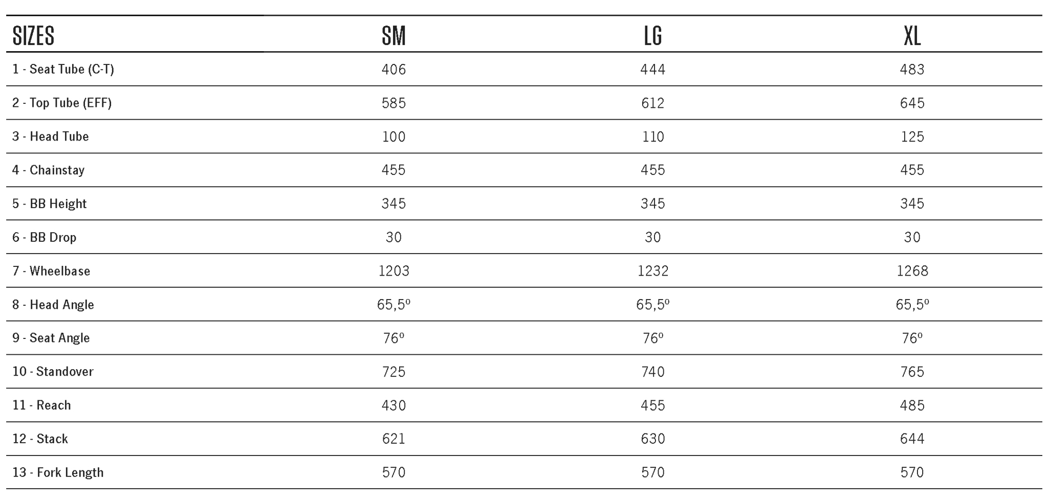 La géométrie se décline en 3 tailles : S/M pour les pilotes de 160 à 175cm, L pour ceux de 170 à 185cm et XL pour la tranche 180-198cm.