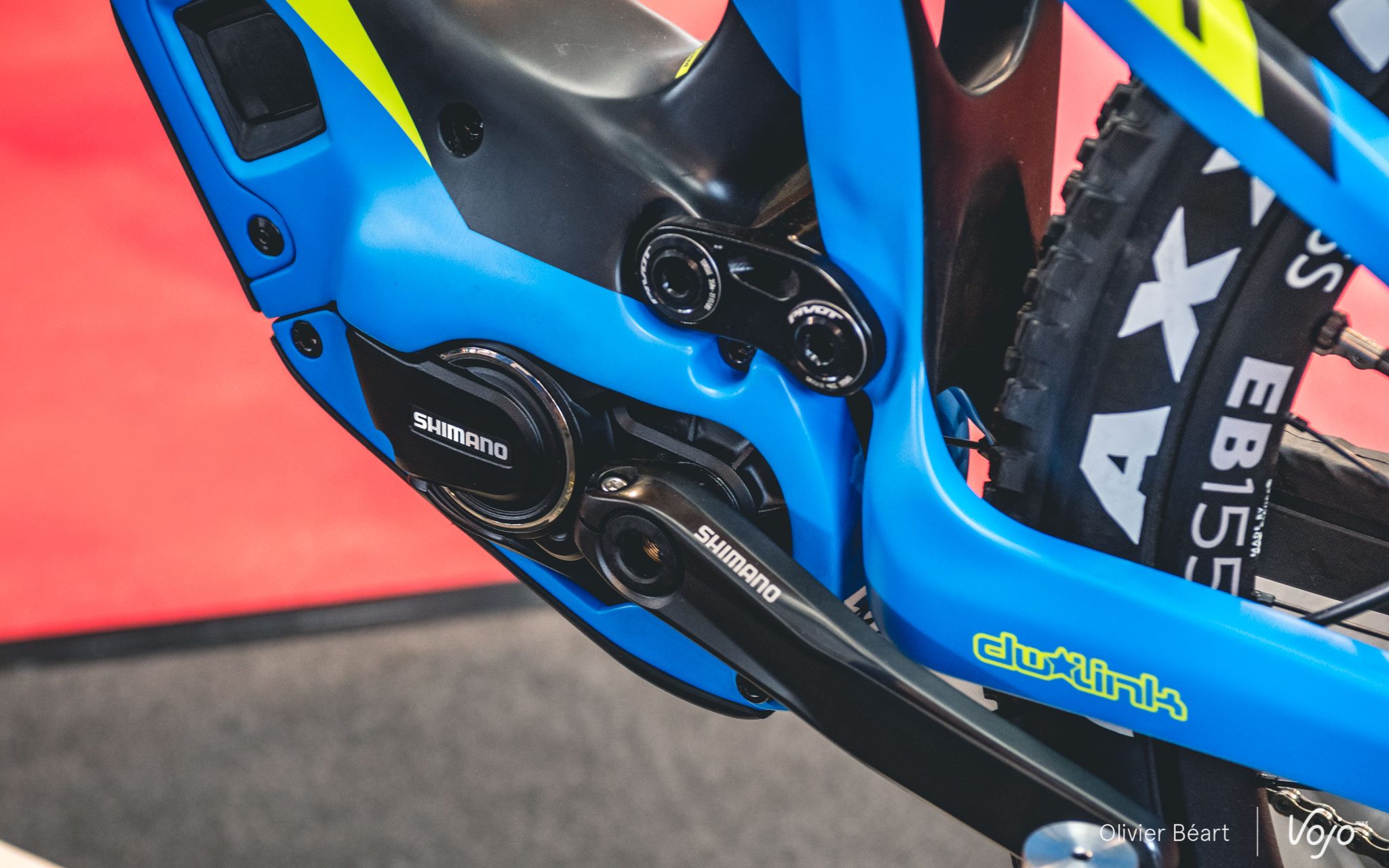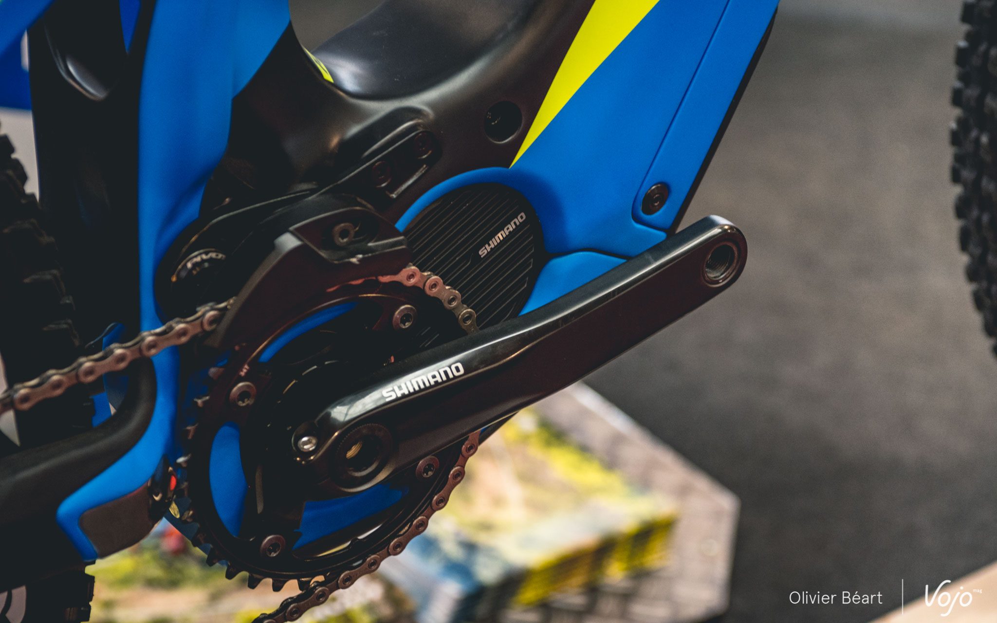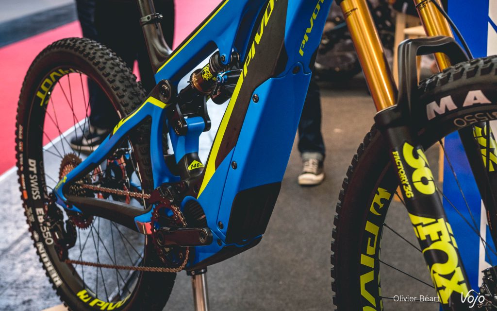 La batterie n’est d’ailleurs pas la batterie intégrée proposée par Shimano, mais la batterie « classique » que Pivot a réussi à inclure dans son cadre ; un peu à la manière de ce que Moustache réalise avec la batterie Bosch.