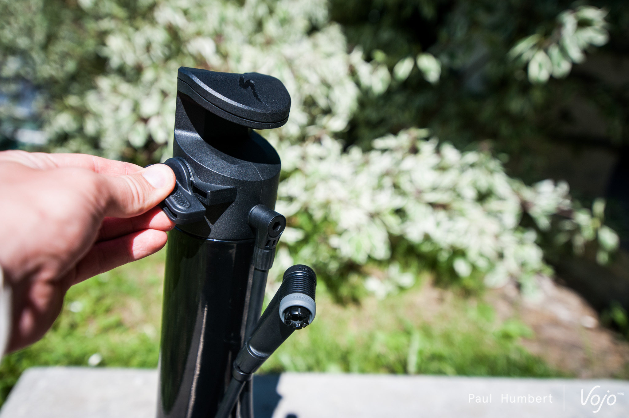 Il suffit ensuite d’activer la valve de sortie pour gonfler jusqu’à 4 pneus (classiques). Il est possible de transporter séparément la chambre « Blast » une fois chargée en air ou de laisser la pompe connectée, ce qui vous permet d’utiliser son manomètre qui restera fonctionnel.