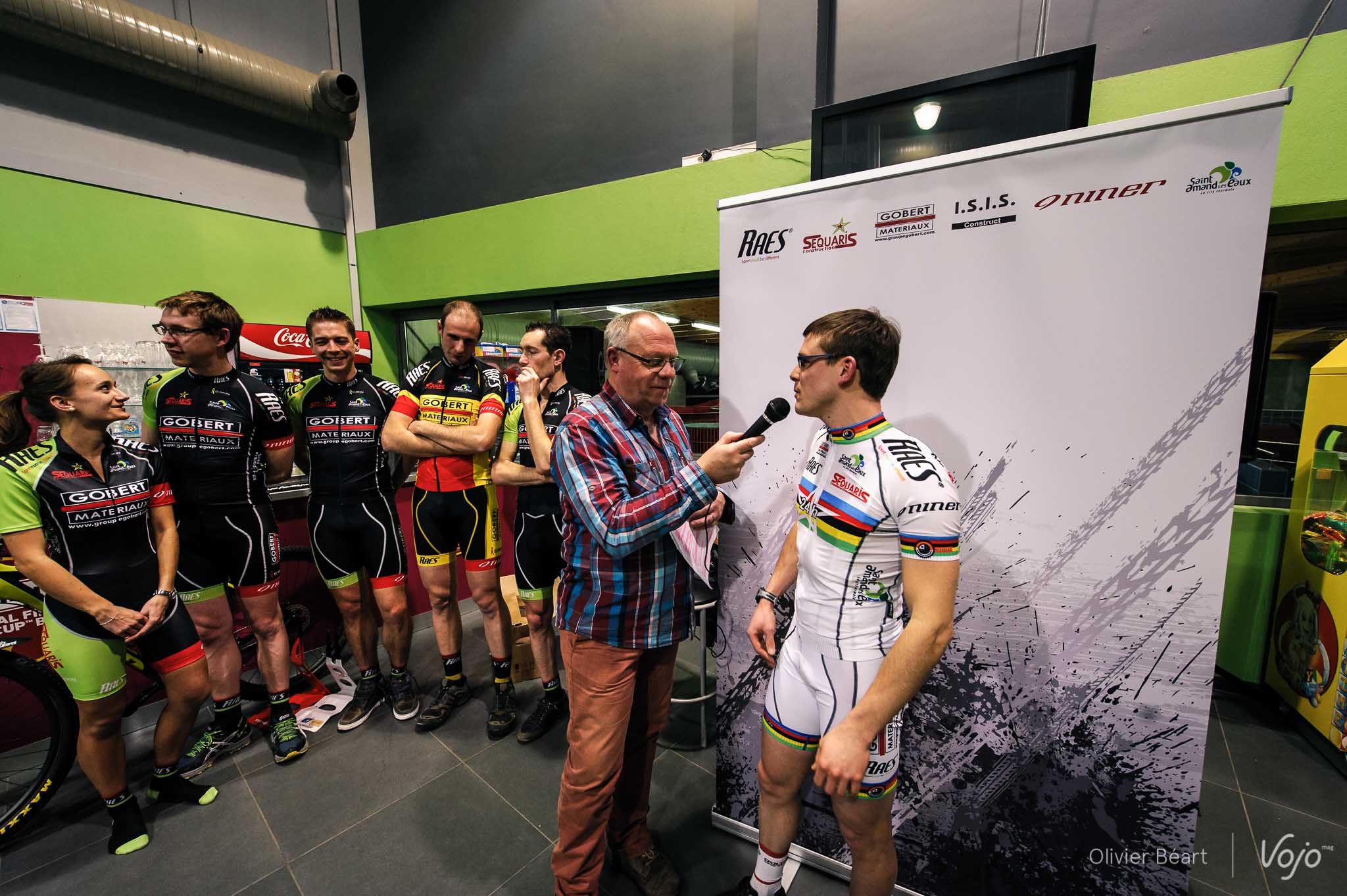 Ils sont ici accompagnés par Jean-François Raes, lui-même compétiteur sur route, initiateur du team et patron du magasin Raes Bike dans le Hainaut. Au centre, on retrouve Martin Dupuis, ancien spécialiste des courses de 24h solo qui s’est reconverti dans des distances plus courtes depuis qu’il est papa. Ce qui a l’air de lui réussir car il est devenu l’an dernier champion de Belgique amateur (non licencié) sur le circuit du Bois des Rêves à Ottignies.