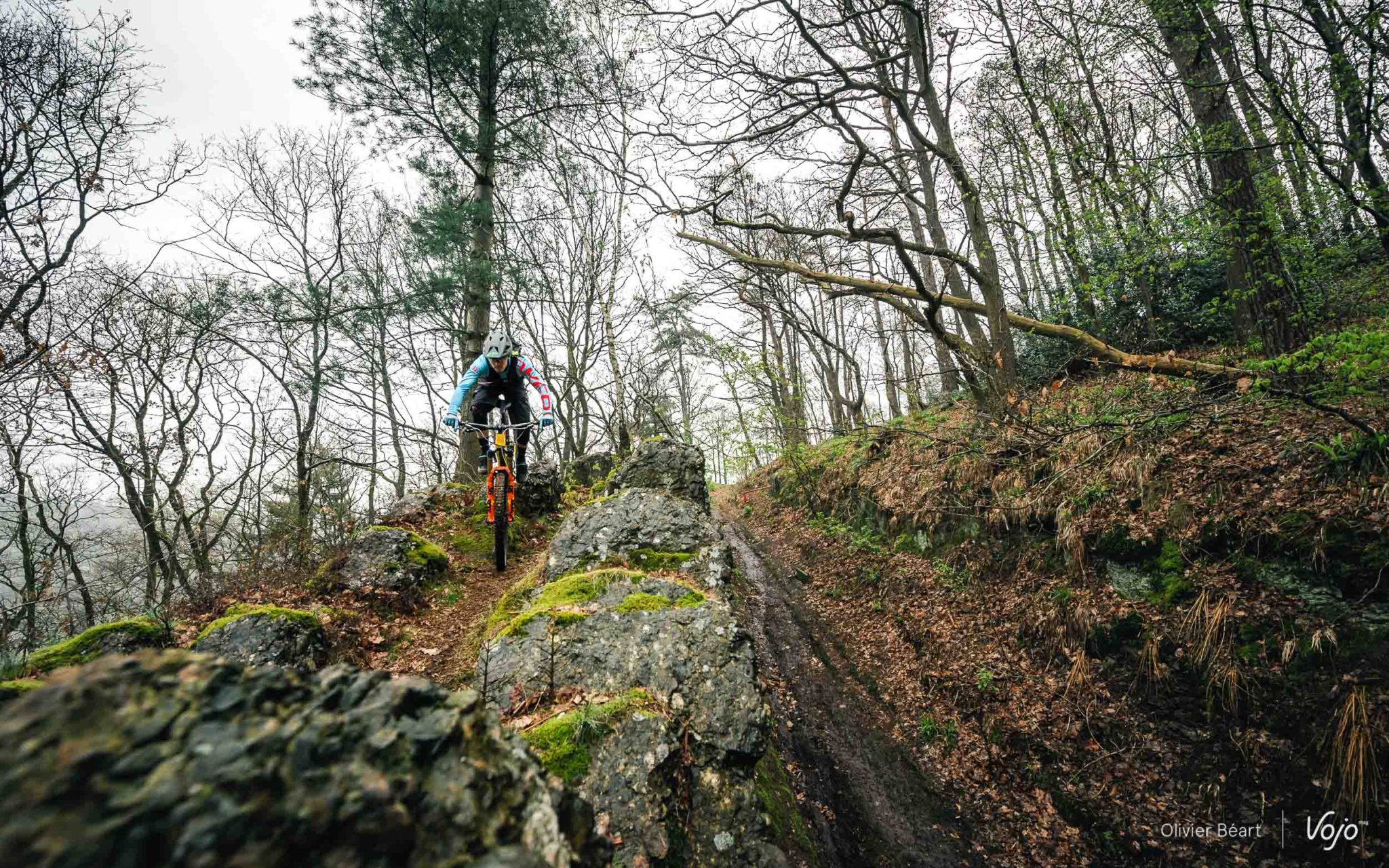 Tracé sur les versants de la Vesdre, petit cours d’eau local, il se veut particulièrement varié, technique et engagé sans être extrême. Il y a du raide dans de la terre un peu souple qui permet des appuis généreux…