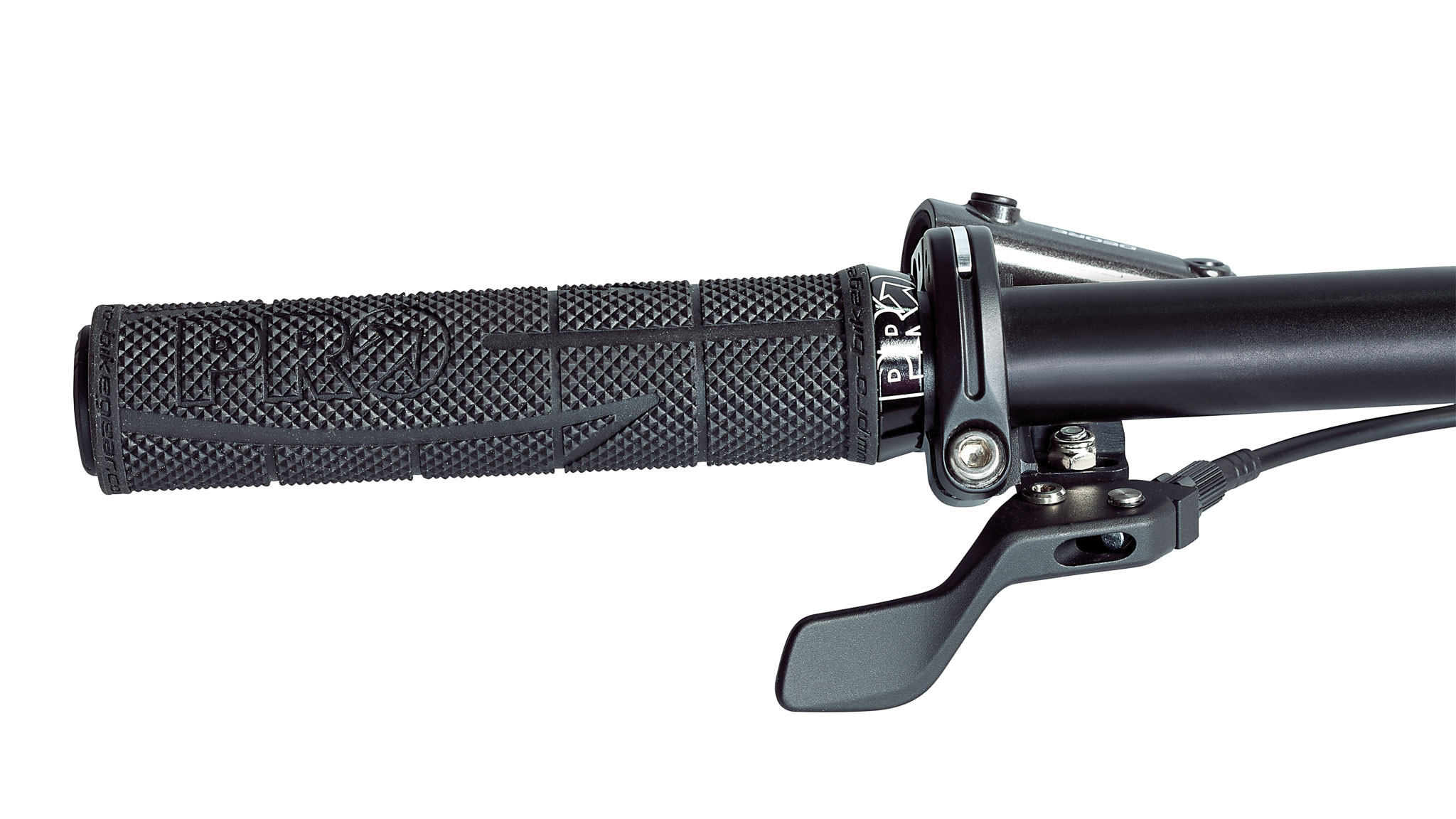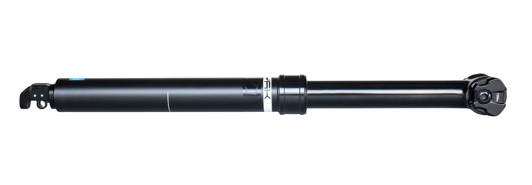 La commande au guidon est reliée à la tige par le bas, façon « stealth » pour passage du câble par l’intérieur du cadre. Aucune version avec câblerie externe n’est au programme, mais les cadres non prévus pour les tiges télescopiques se font rares aujourd’hui. Deux options de leviers sont proposées : une version haut/bas qui peut se monter à gauche ou à droite du cintre et qui s’accommode bien de la présence de shifters, ainsi qu’une version « Firebolt » qui prend la place du shifter gauche (photo) quand on roule en mono-plateau ou qu’on utilise la fonction Syncroshift des groupes électroniques Di2 de la marque.