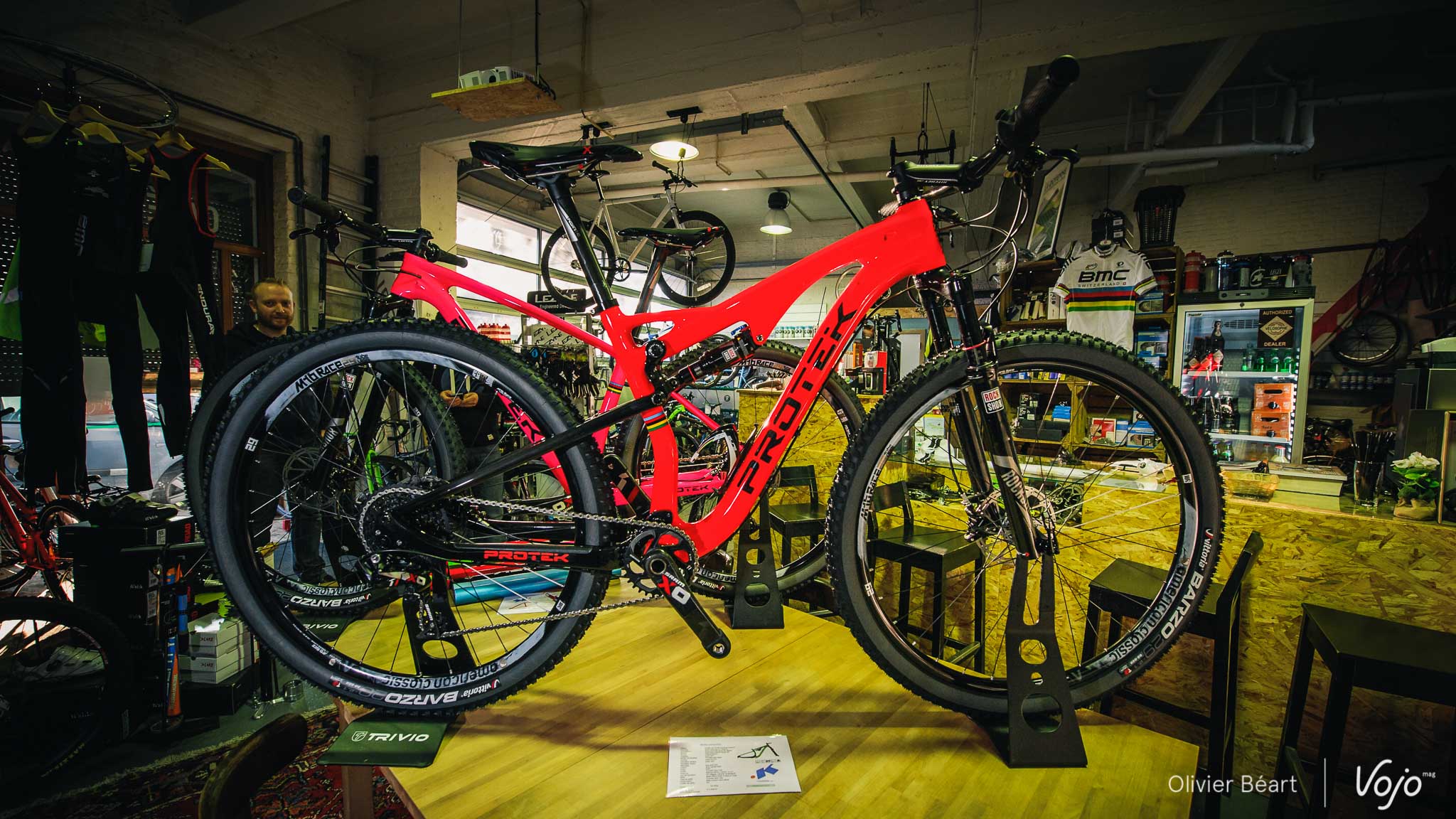 Le nom de Protek vous dit probablement vaguement quelque chose, grâce au Grec Periklis Ilias, champion du Monde Marathon en 2012 à Ornans et toujours parmi les meilleurs mondiaux de la discipline actuellement. Originaire d’Italie, Protek est une petite marque semi-artisanale qui produit encore certains de ses cadres en carbone en Italie et, même si une partie de la gamme provient également d’Asie, elle offre des possibilités de personnalisation uniques. C’est ce qui a séduit Jean-Philippe et Ulrich, du « café-vélo » Le Ravito, qui ont décidé de prendre la distribution de la marque pour la Belgique et le Nord de la France. Nous les avons rencontrés et nous avons découvert d’un peu plus près les deux premiers vélos qu’ils ont fait revenir avant de programmer un essai.