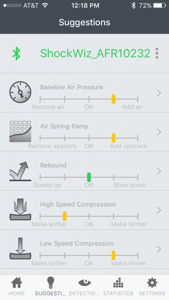 Connecté via Bluetooth/wifi à votre smartphone Androïd ou IOS, l’appareil vous délivre une série de mesures vous aidant à optimiser le comportement de votre suspension sur le terrain sur lequel vous roulez, tout en s’adaptant à votre vélo et à votre style de pilotage. Si l’idée de se plonger dans de complexes réglages rebute de nombreux VTTistes, l’interface semble très « user-friendly » et on comprend très simplement les recommandations de l’appareil.