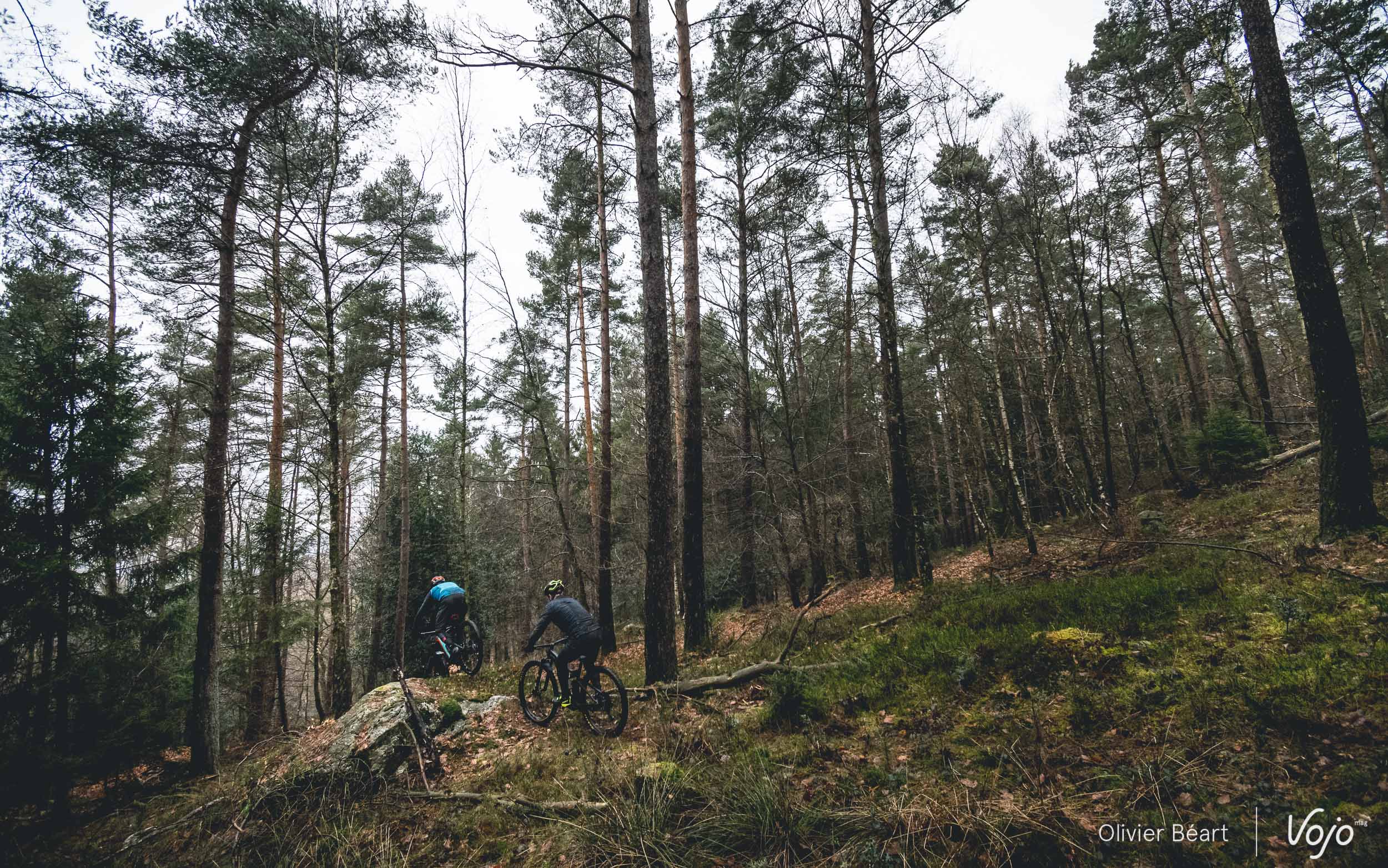 Du côté de l’enduro, celui-ci revient à un format sur 7 spéciales, contre 8 l’an dernier pour le championnat de Belgique. Une nouvelle spéciale fait son apparition, la blaireau. Nous l’avons repérée et elle est superbe. Un début assez plat en sapinière avec quelques passages de rochers, puis une fin beaucoup plus raide mais qui reste ludique : elle s’annonce bien. Nous avons réussi, là aussi, à tout passer avec un XC selle haute, sauf un endroit. Globalement, même si l’Amblève restera toujours l’Amblève avec sa difficulté, le mix de spéciales proposé devrait être plus axé sur le côté ludique cette année.