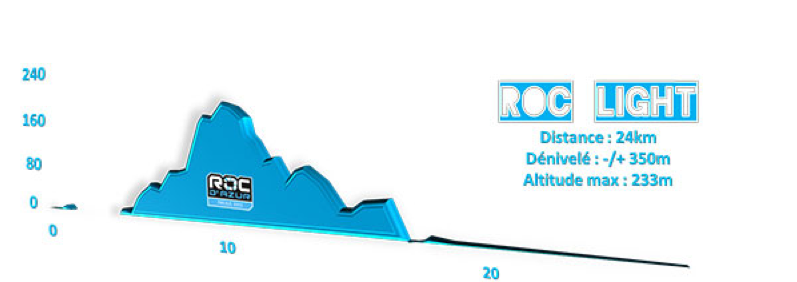 – Le Roc Pro devient le Roc Light. Il s’ouvre au plus grand nombre et n’est donc plus réservé aux professionnels du milieu du cycle (représentants de marques, journalistes, etc), ainsi qu’aux uniformes (police, pompiers,etc). Son parcours ne fera plus que 24km pour 350m de d+. Il est présenté comme une mise en jambes pour le Roc. Il aura lieu le jeudi, avec départ à 9h30. Son profil :