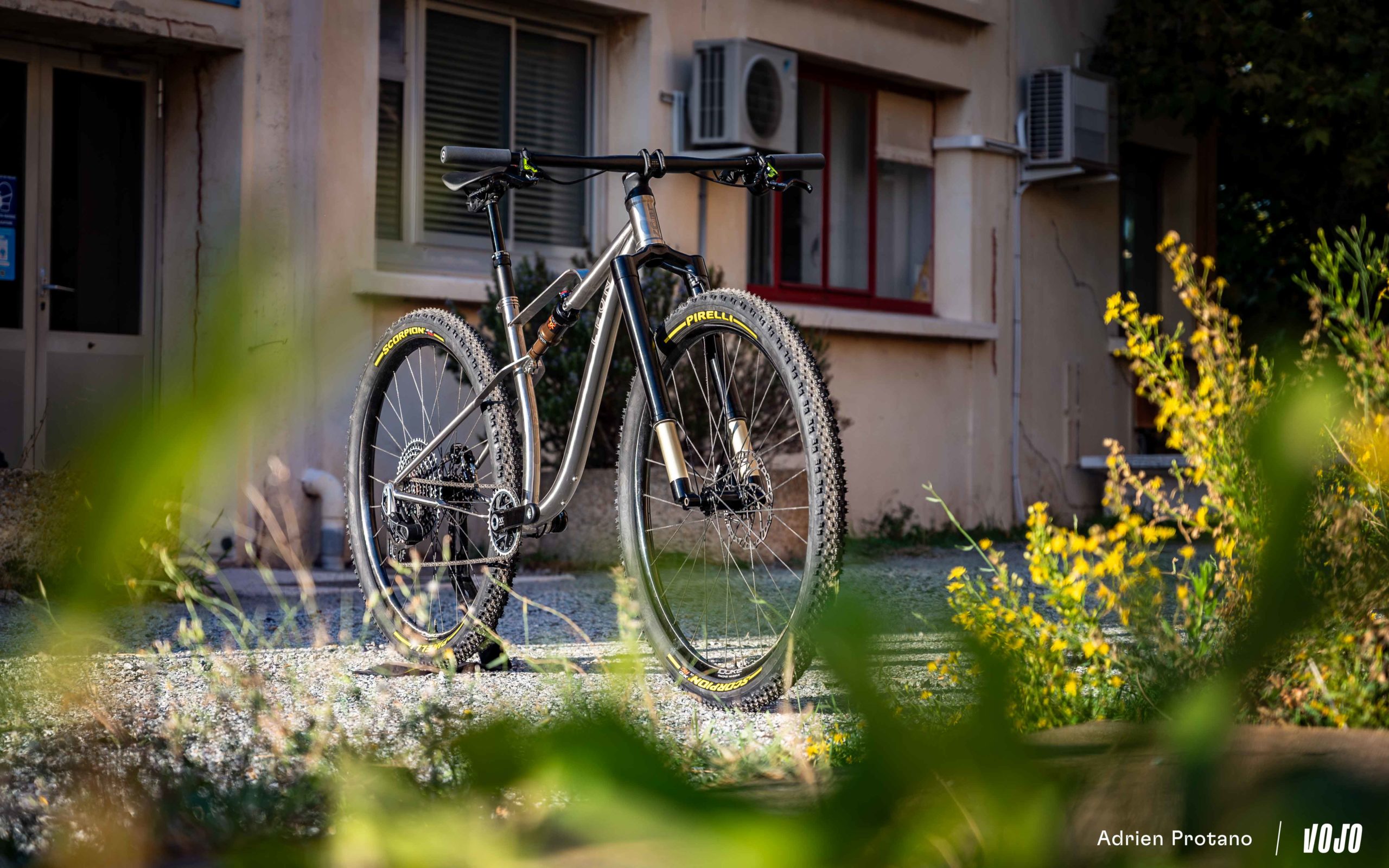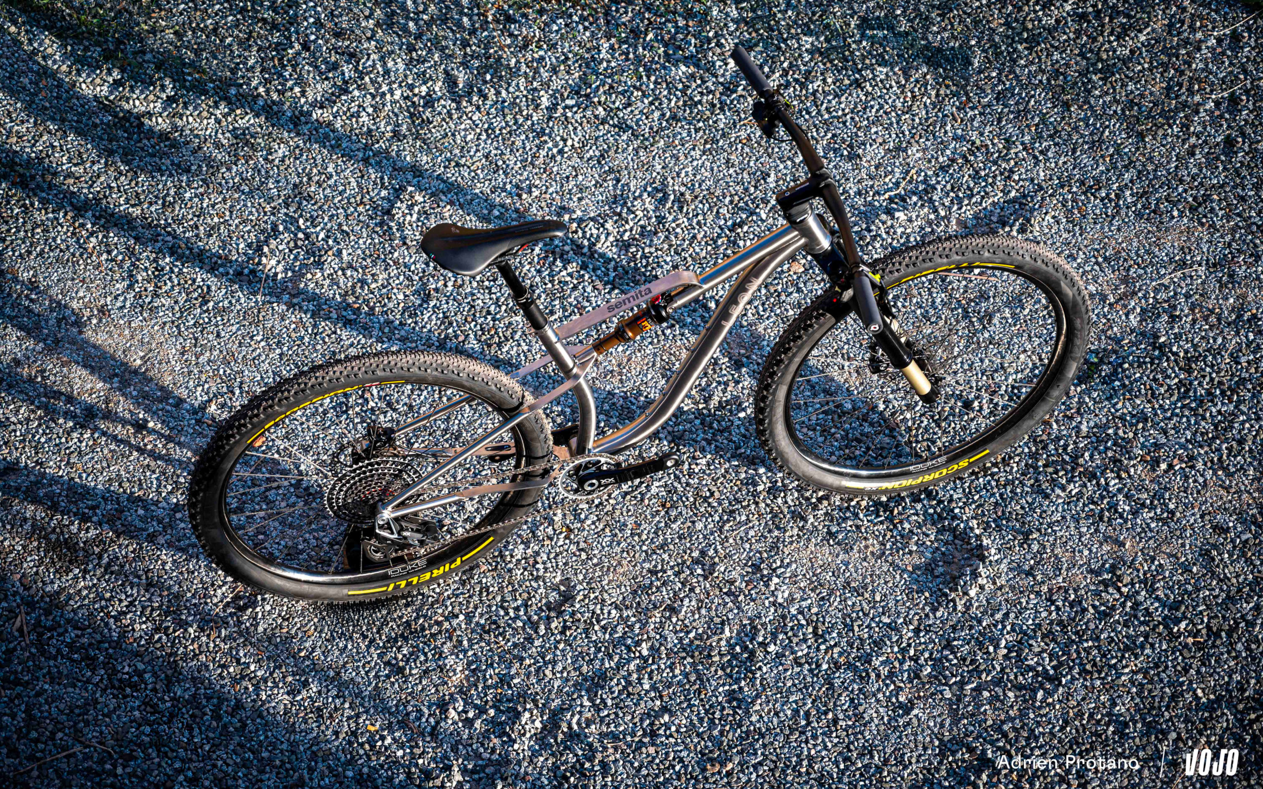 Ce nouveau-venu au sein de la marque française a toutefois une géométrie tout à fait contemporaine, mais pas extrême. Elle est caractérisé par un angle de direction de 67°, un angle de tube de selle de 76° et des bases de 435 mm. Comme d’habitude, les chiffres c’est bien, le test terrain c’est mieux !