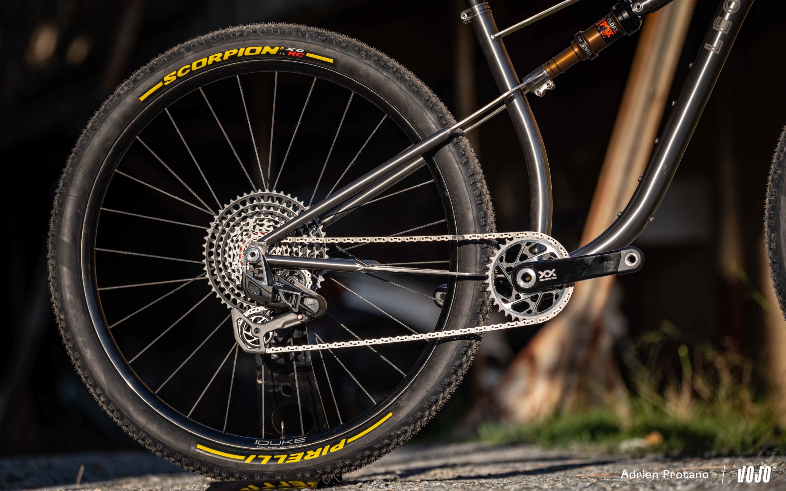 En cohérence avec l’air du temps, le cadre est évidemment compatible avec les transmissions T-Types de chez Sram, en montage direct.