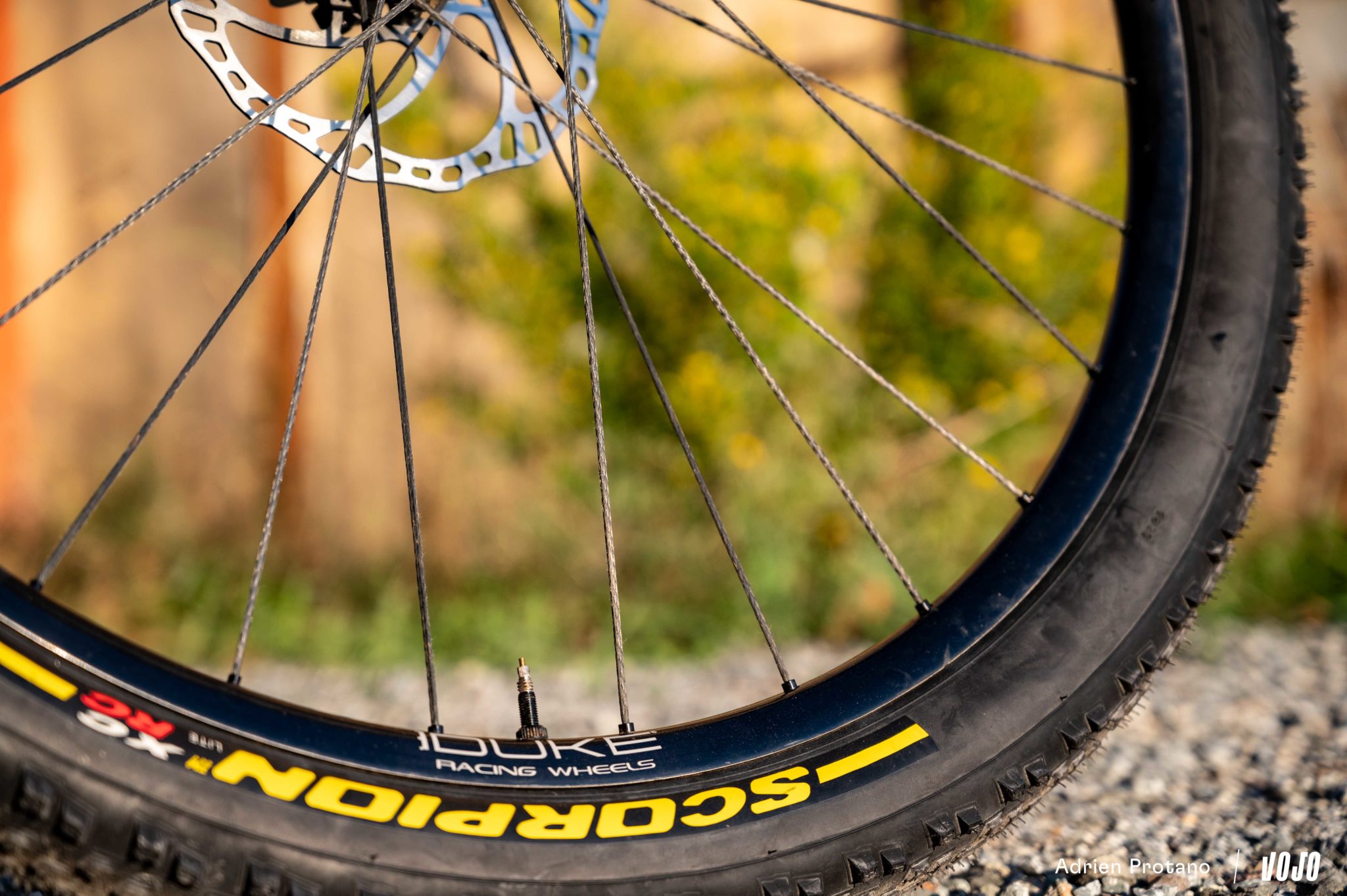 C’est également un produit d’exception que l’on retrouve au niveau du train roulant puisqu’il s’agit là d’une paire de roues Duke aux rayons Berd, à savoir des rayons textiles (ou plus précisément à partir d’un polymère avancé). Plus léger que les rayons en acier, mais également plus durable, ce type de rayonnage a bon nombre d’avantages si ce n’est celui du montage nécessitant plus de temps. Elles sont montées en Alsace par AlsaTrade.