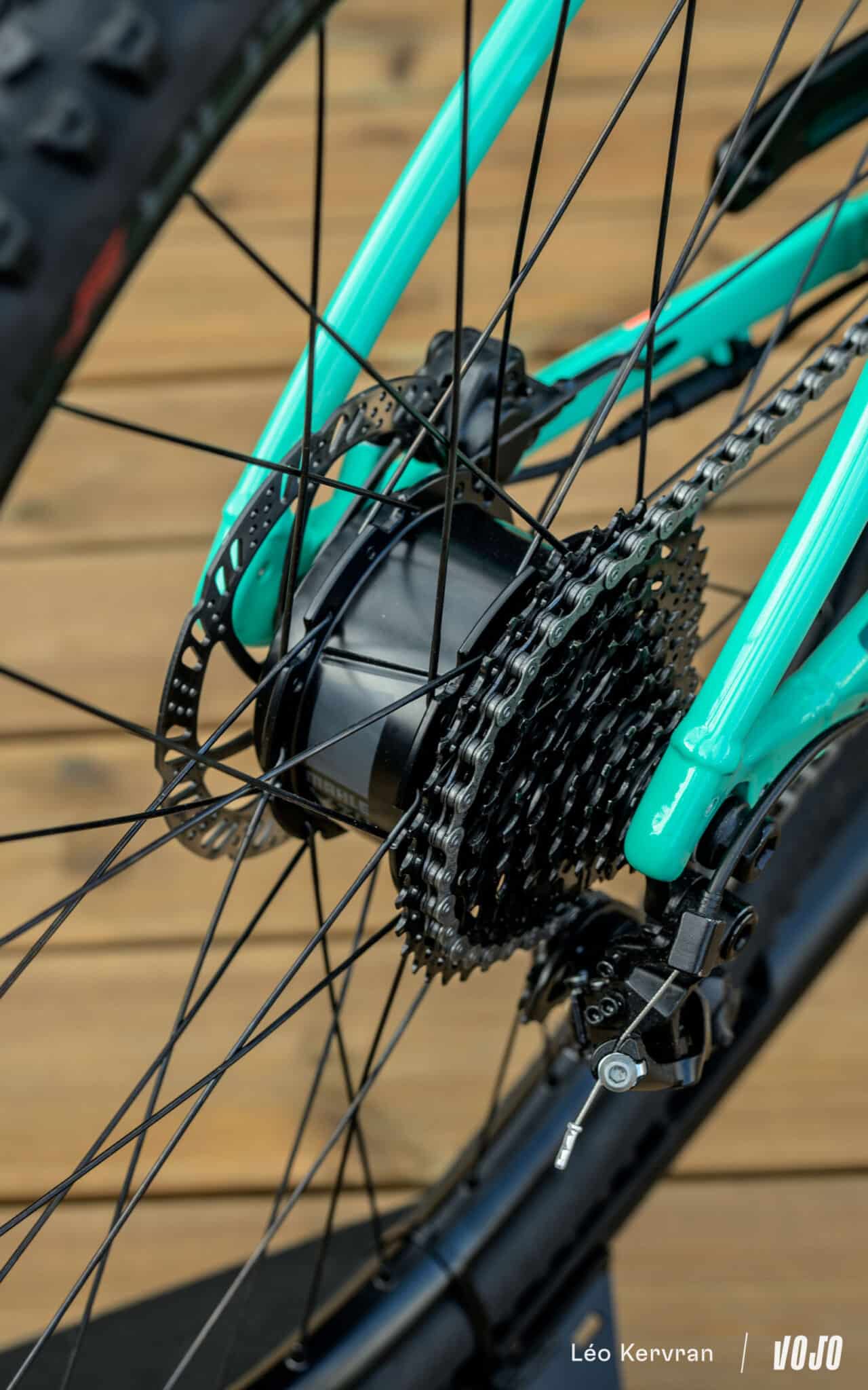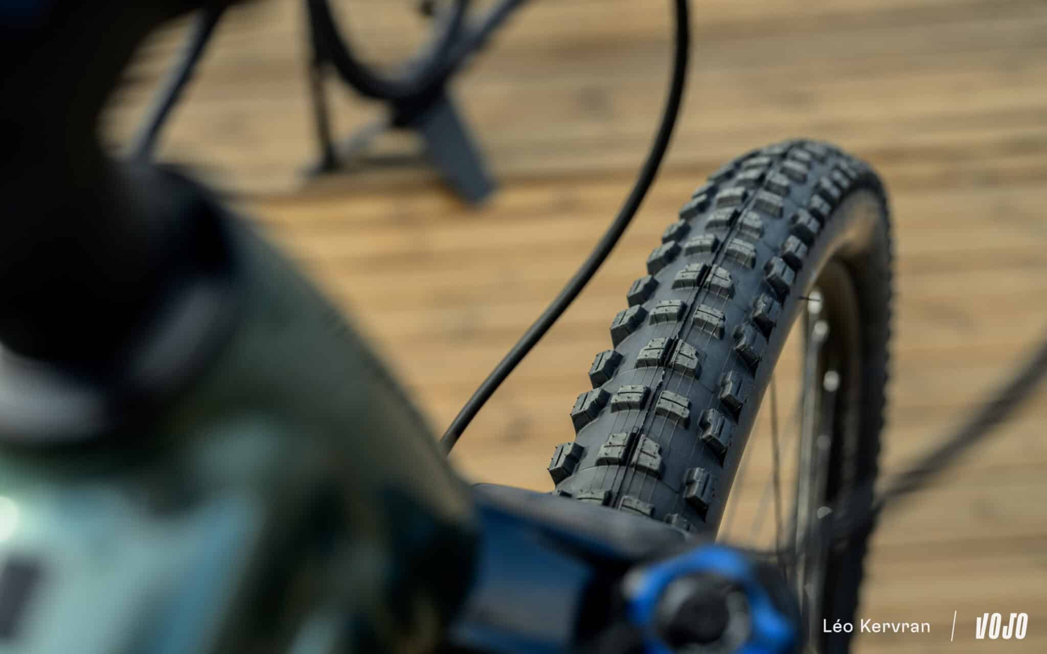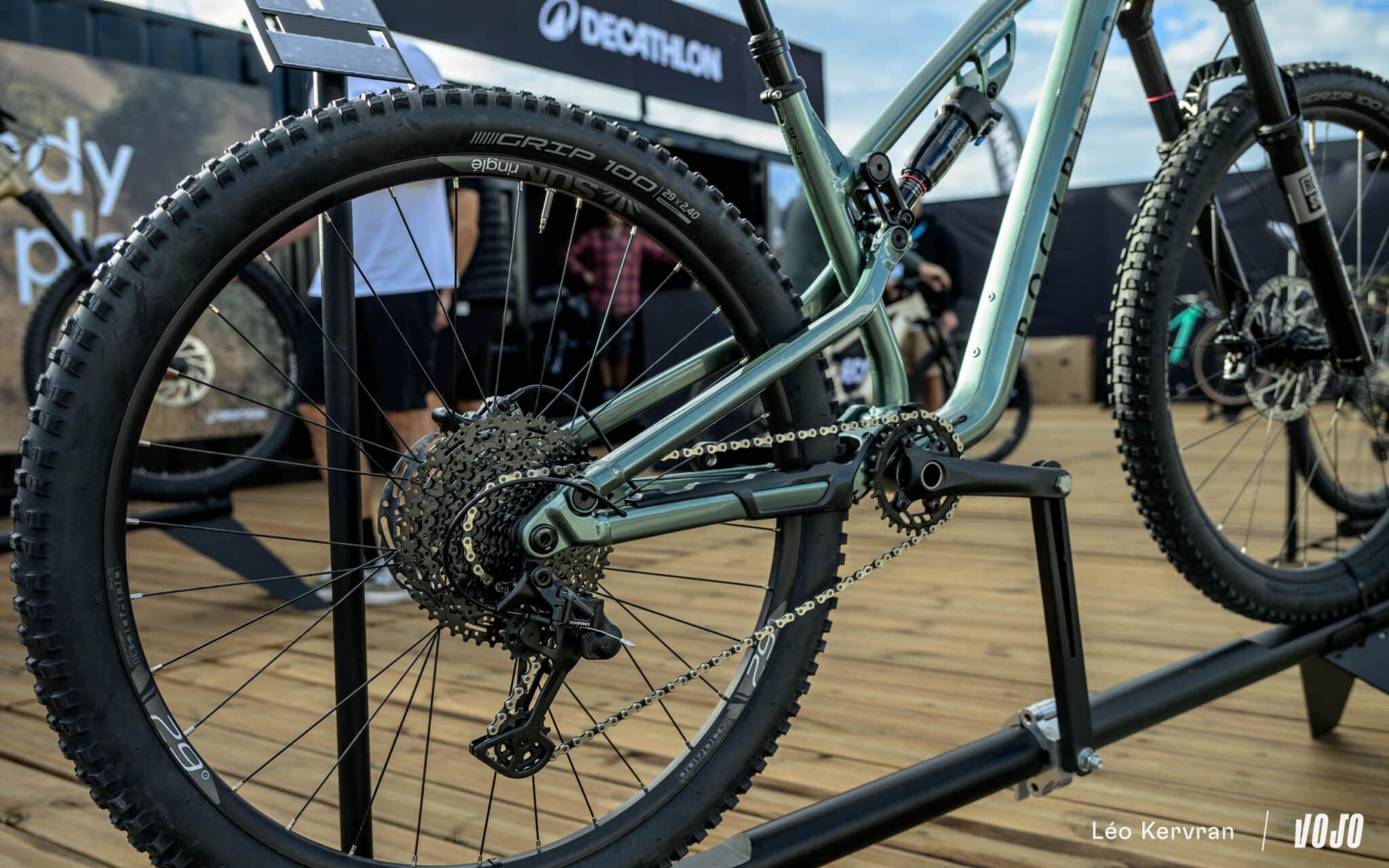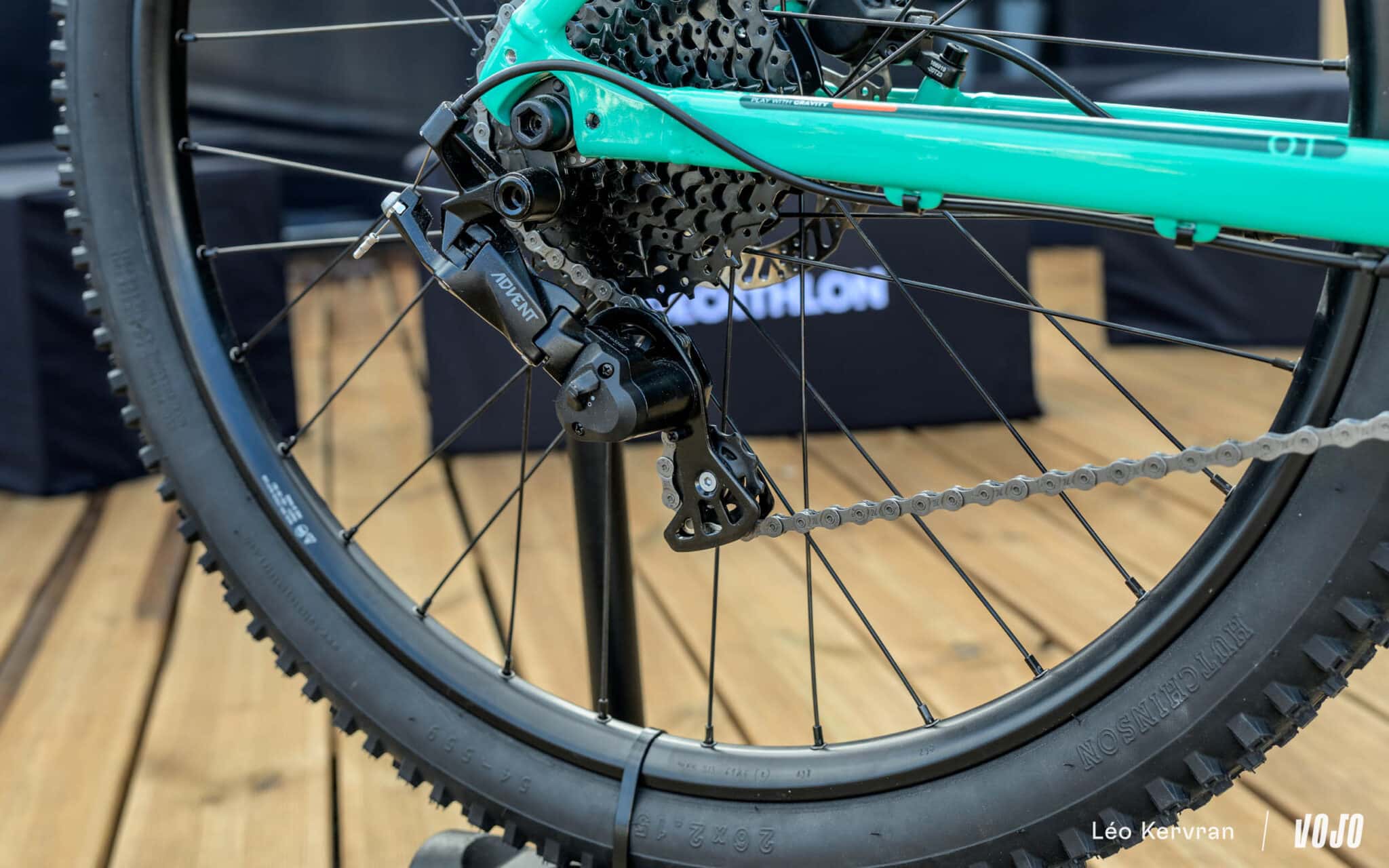 L’équipement est plutôt intéressant malgré le prix puisque le vélo est équipé d’un amortisseur RockShox Deluxe et surtout de la nouvelle fourche RockShox Psylo Gold (lire Test | RockShox Psylo Gold RC : simple et flatteuse !), de roues Sun Ringlé chaussées de pneus maison et d’une étonnante transmission Tektro 1×11. Tektro, ce n’est pas un nom qu’on a l’habitude de voir sur ce poste mais il s’agit tout de même de la maison-mère de TRP, qui veut concurrencer Sram et Shimano sur les transmissions haut de gamme alors, pourquoi pas ?