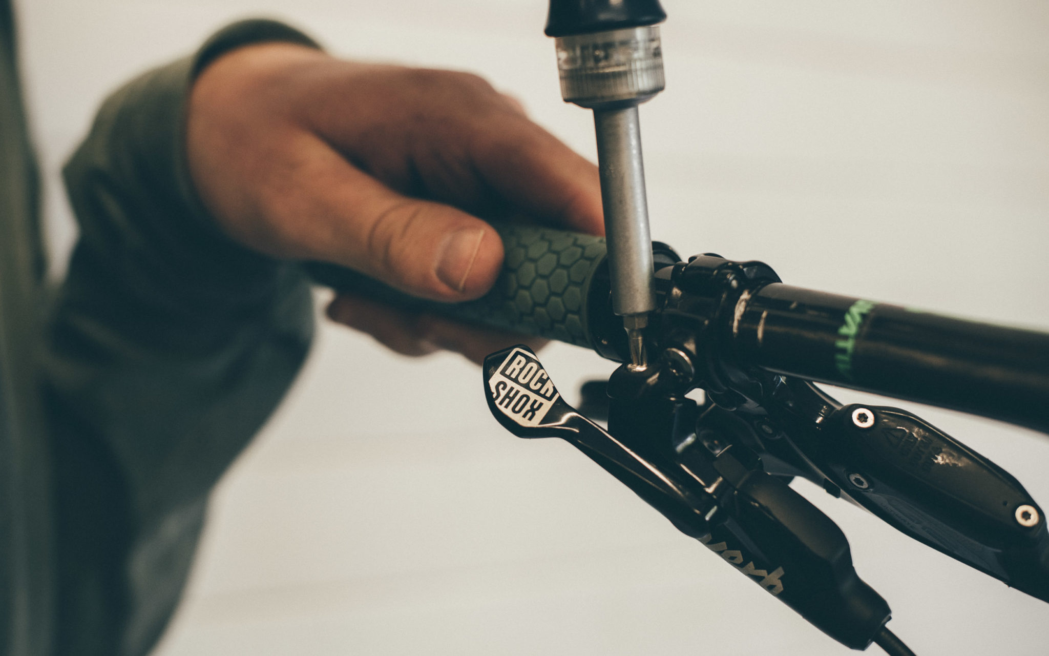 Un des soucis les plus fréquents dans une tige de selle télescopique est l’entrée d’air dans le système, qui entraîne un affaissement de la selle sur quelques centimètres même quand le circuit est fermé. Pour éliminer facilement ce mélange air-huile nuisible, RockShox a introduit la Vent Valve sur la Reverb AXS. Ce principe est désormais décliné sur la Reverb Stealth, à la différence que cette valve de purge est située en haut et non en bas de la tige de selle, vu la présence de la Durit reliée à la commande au guidon sur le modèle Stealth. Il faudra donc retirer la selle pour y avoir accès, mais ensuite l’opération ne prend que quelques secondes. Muni d’un petit outil en forme de « poignée », on appuie fermement sur la valve, on fait descendre la tige et le système est purgé de son air. Quant à la fréquence des entretiens, elle est allongée et fixée désormais à 600h.