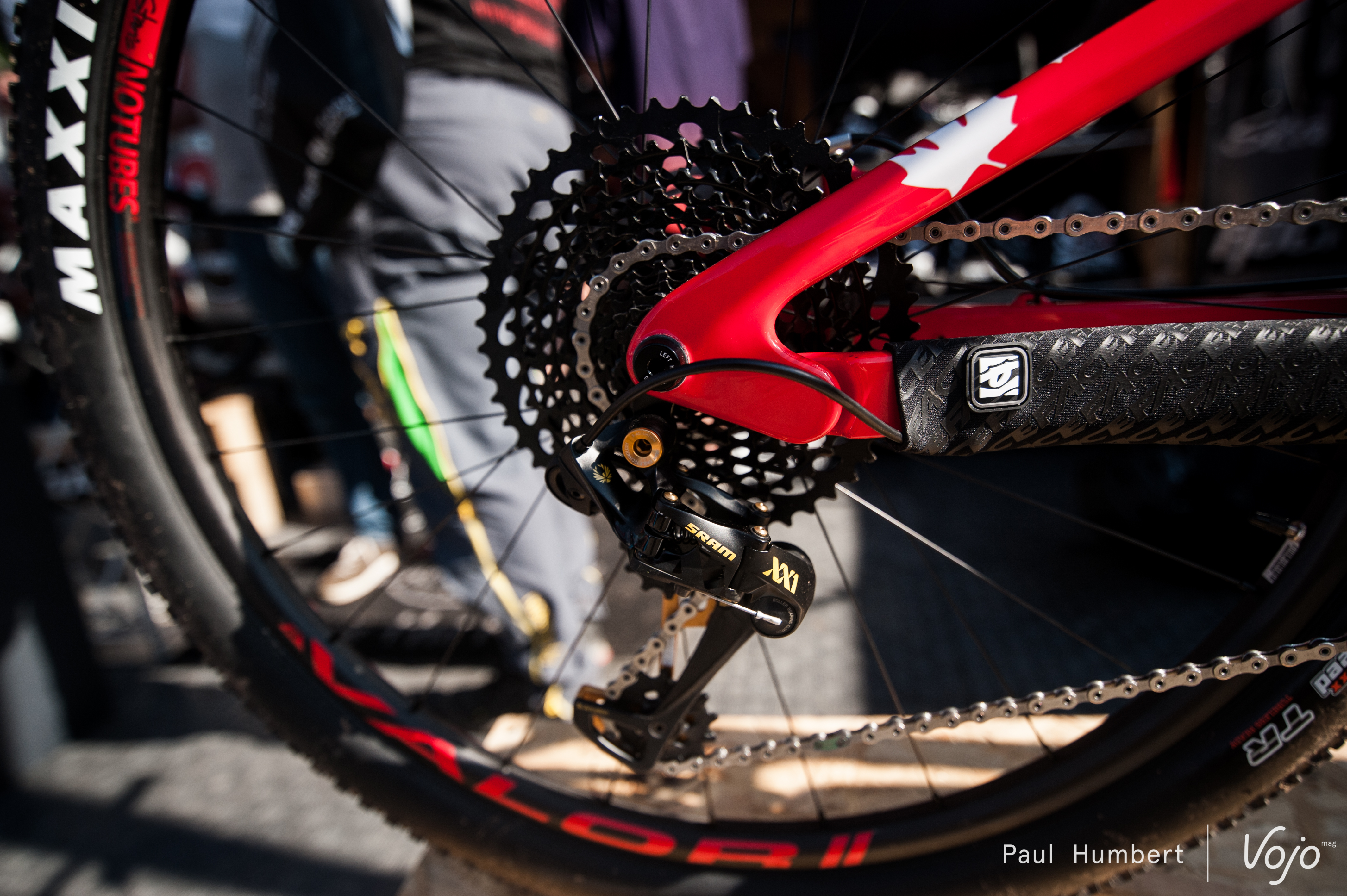 Le vélo reste compatible avec le montage d’un dérailleur avant, mais les plateaux ne peuvent excéder 28/40 dents. En mono, ils ne peuvent dépasser 36 dents en Race Face et 38 en Sram. Le boîtier de pédalier est en Pressfit BB92.